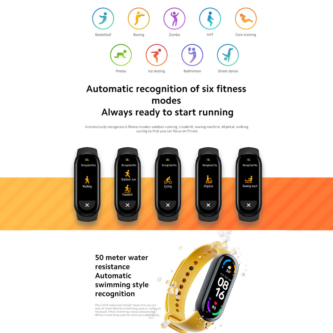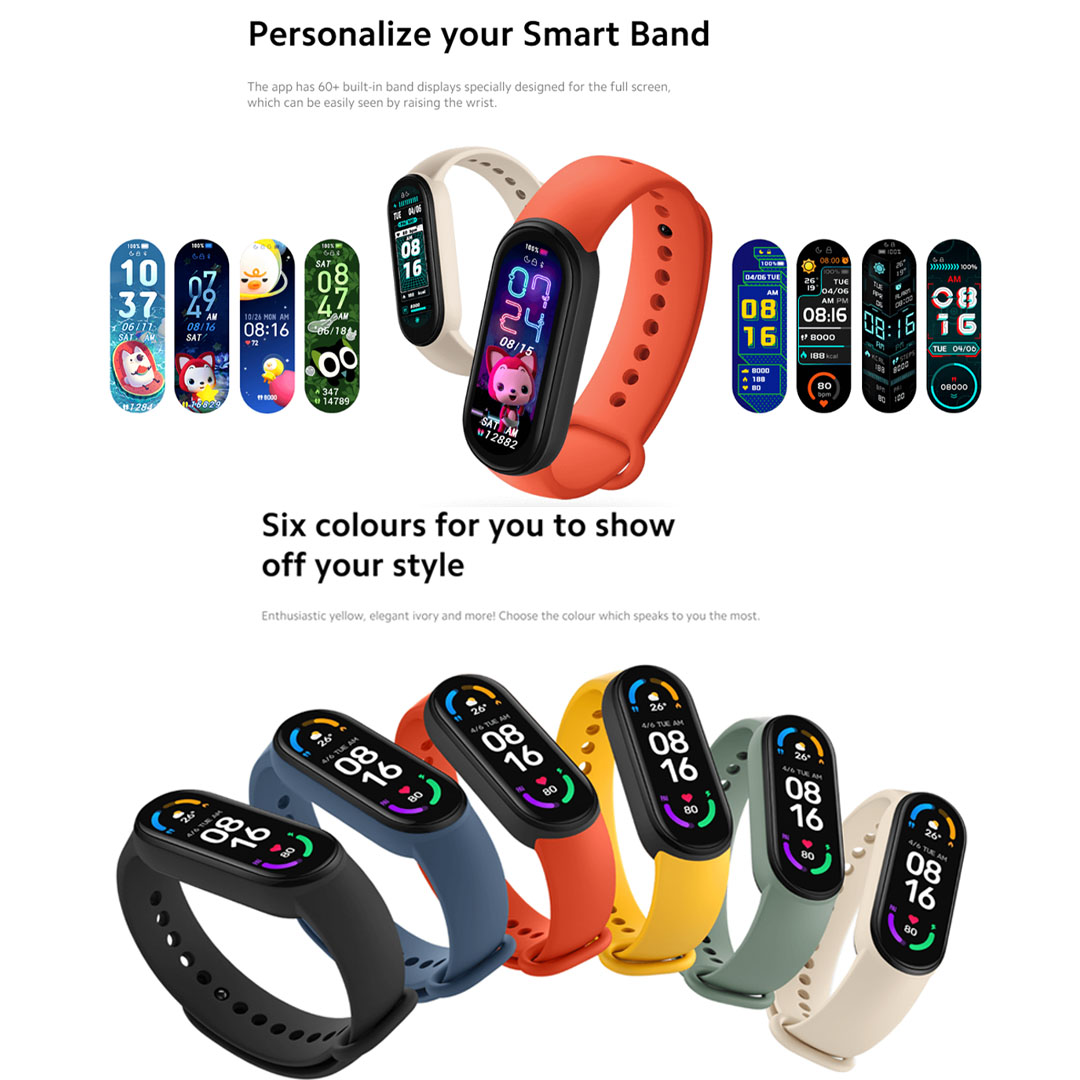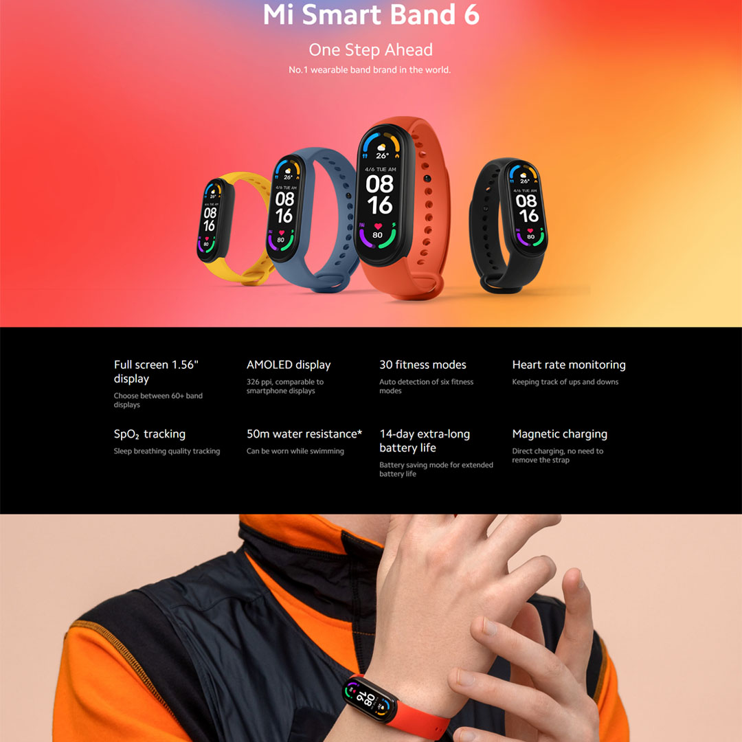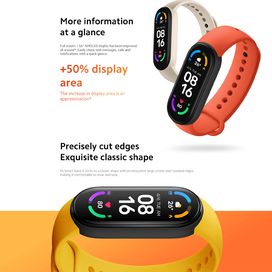 Xiaomi Mi Smart Band 6 | Full screen 1.56" Display | 50M Water Resistance | 14-Day Extra-long Battery Life | Smart Bands with 1 Year Warranty