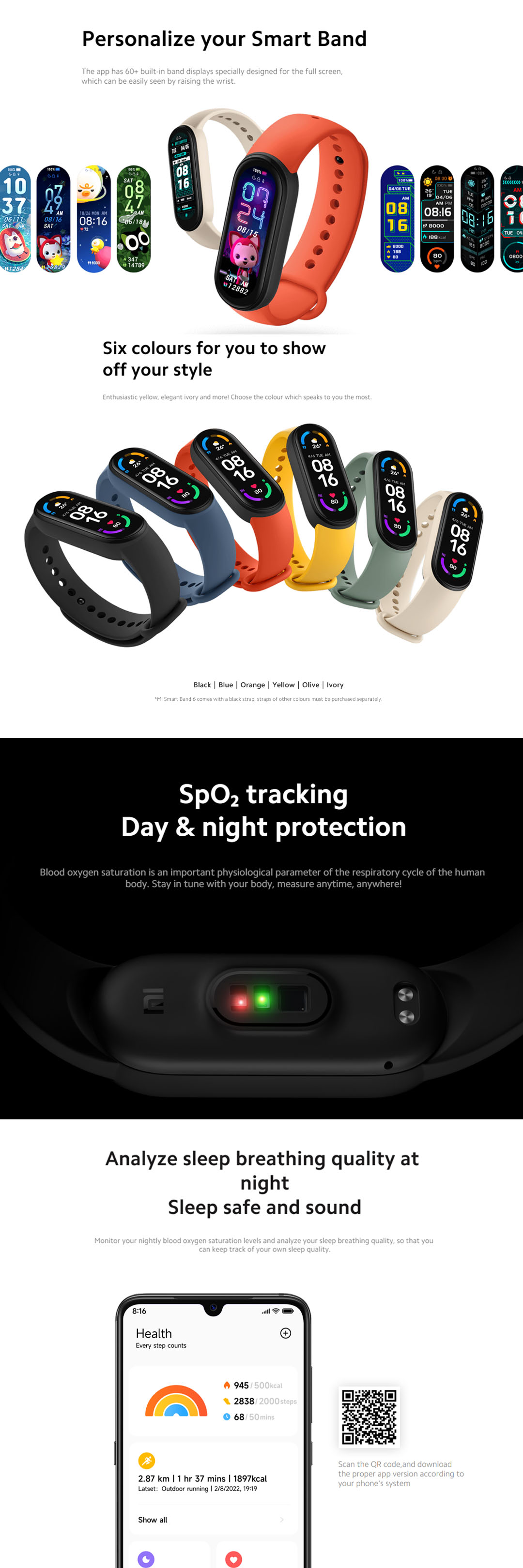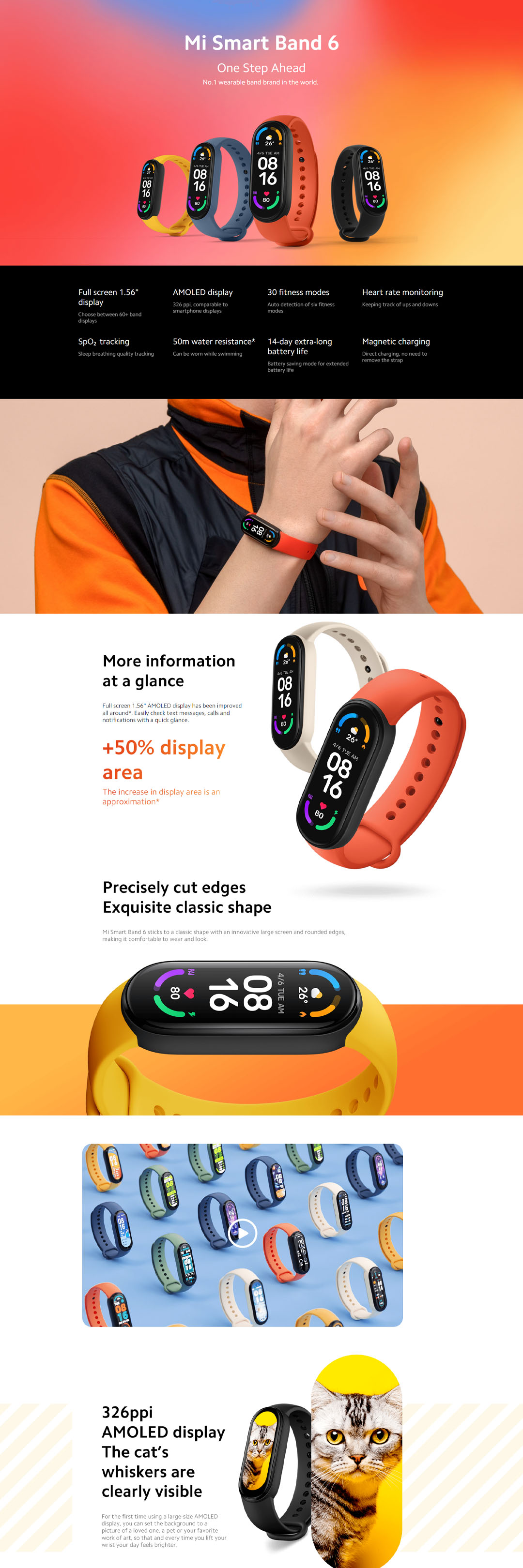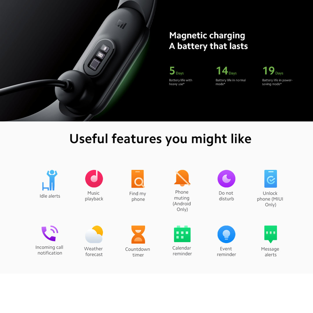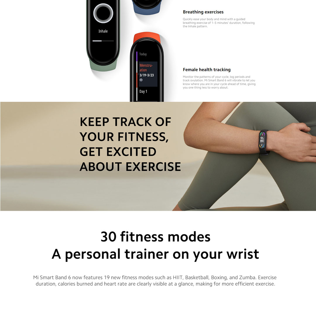 Xiaomi Mi Smart Band 6 | Full screen 1.56" Display | 50M Water Resistance | 14-Day Extra-long Battery Life | Smart Bands with 1 Year Warranty