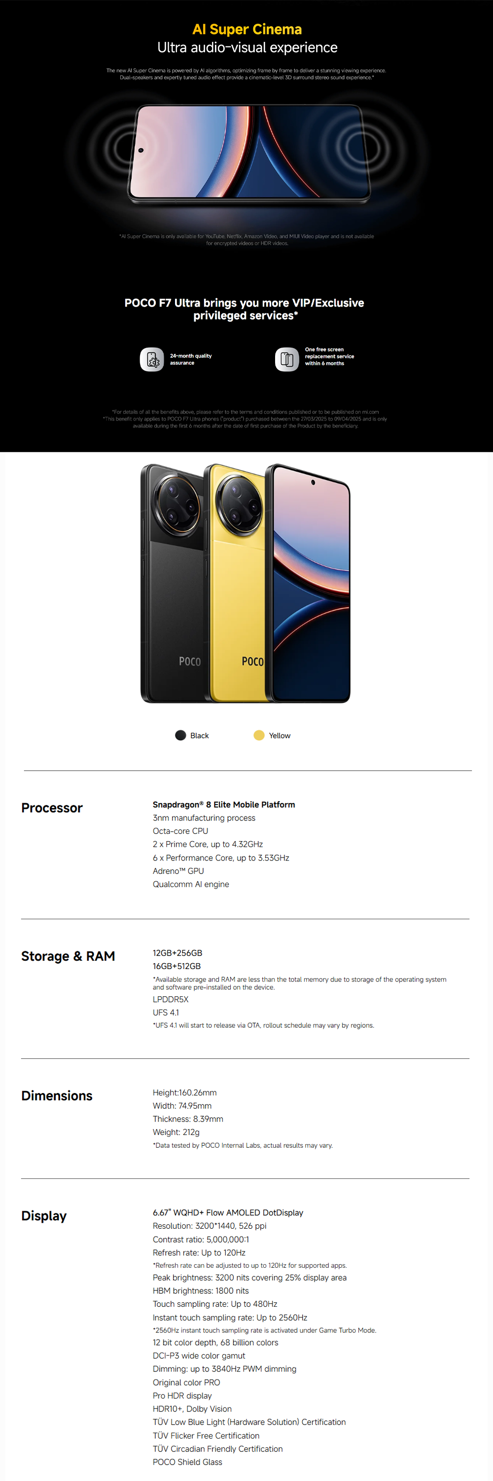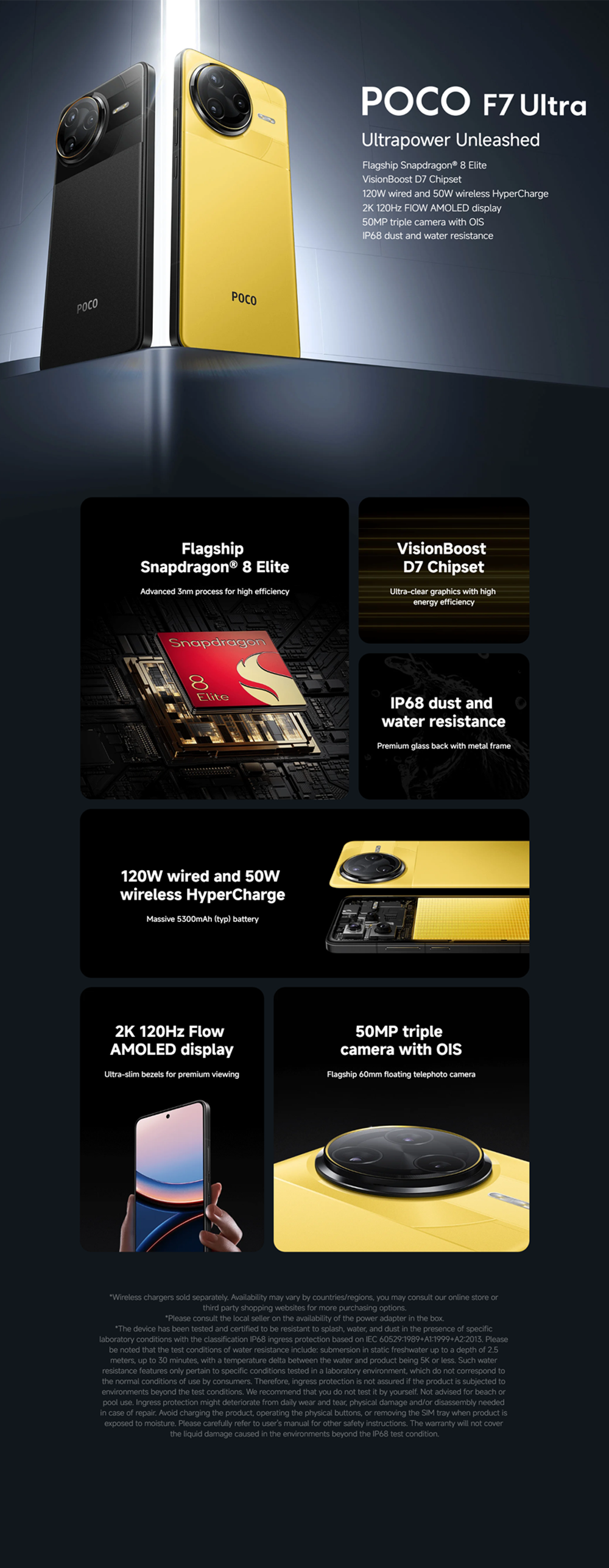 Xiaomi POCO F7 Ultra 12GB+256GB/ 16GB+512GB | Qualcomm SM8750-AB Snapdragon 8 Elite (3 nm) | 6.67 inches, AMOLED | 50MP Main Camera | Li-Po 5300 mAh, 120W HyperCharge