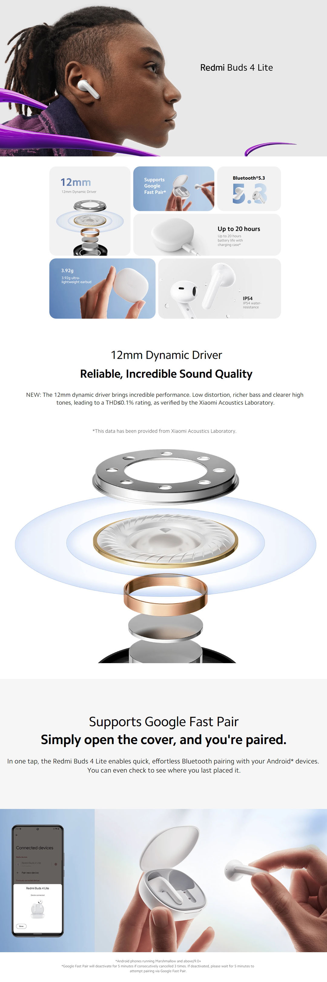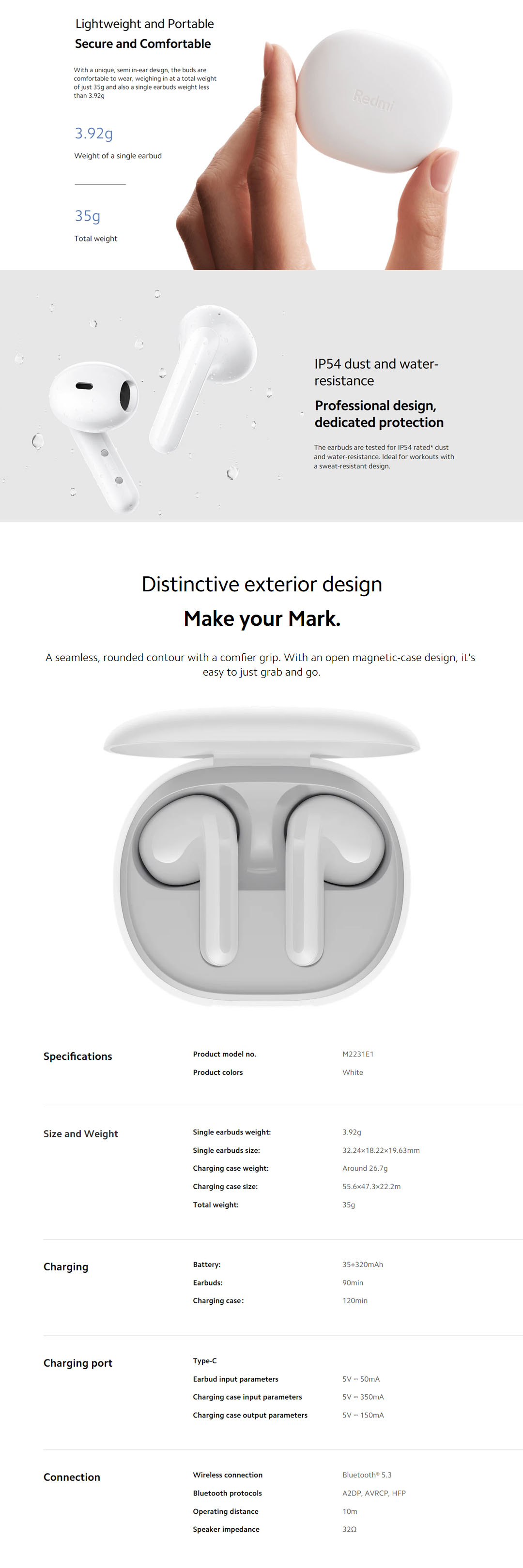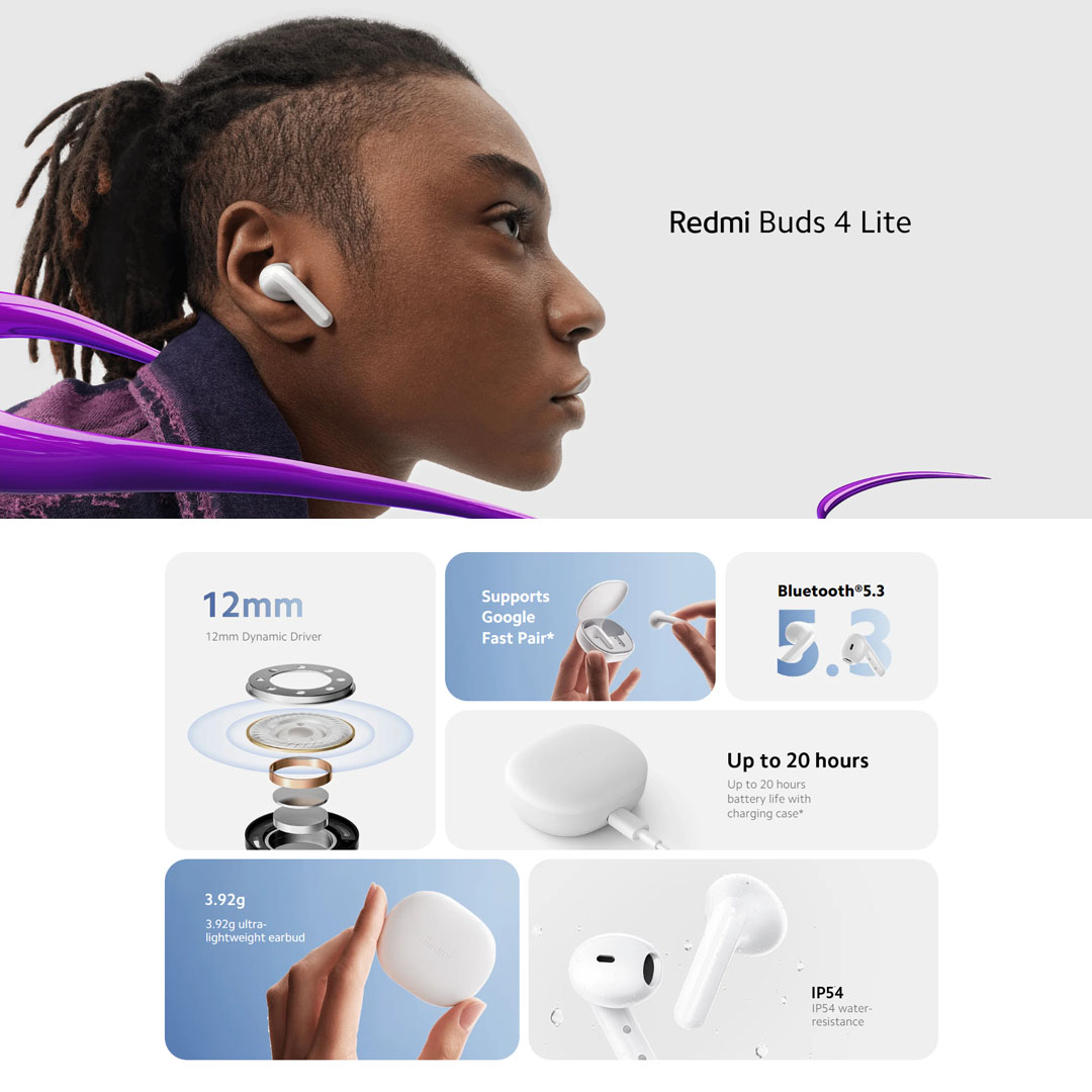 Xiaomi Redmi Buds 4 Lite | Bluetooth 5.3 | Up to 20 Hours Battery Life | IP 54 Water-Resistance | Type C | Earbuds with 1 Year Warranty