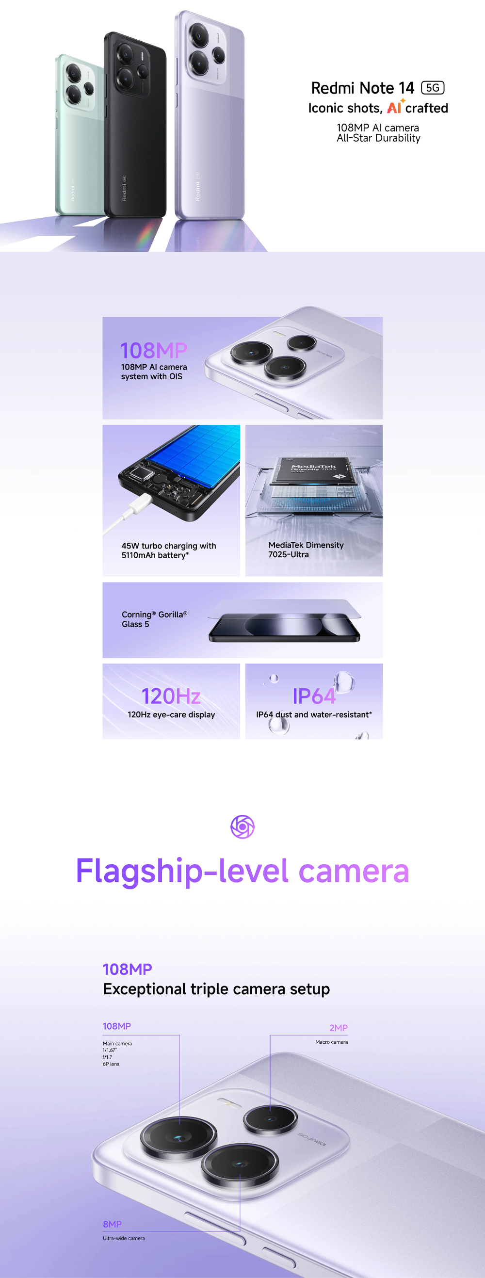 Xiaomi Redmi Note 14 5G | 108MP AI camera | 45W Turbo Charging With 5110mAh Battery | MediaTek Dimensity 7025-Ultra