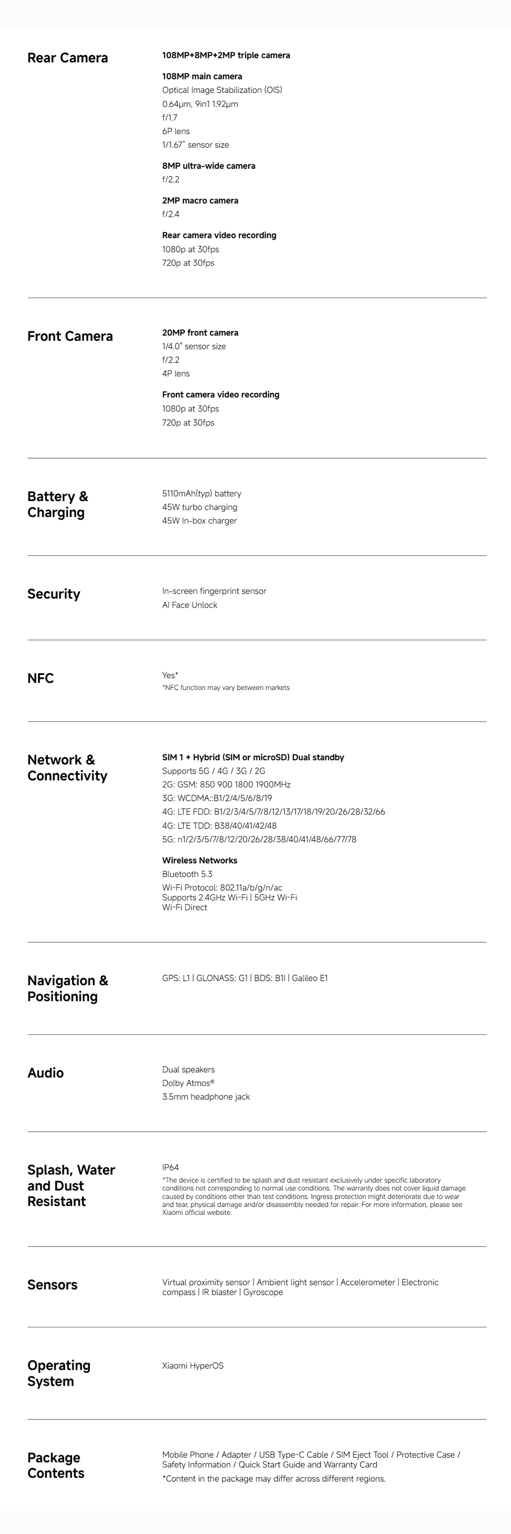• Battery Capacity(mAh): Li-Po 5110mAh, Supports 45W fast charging