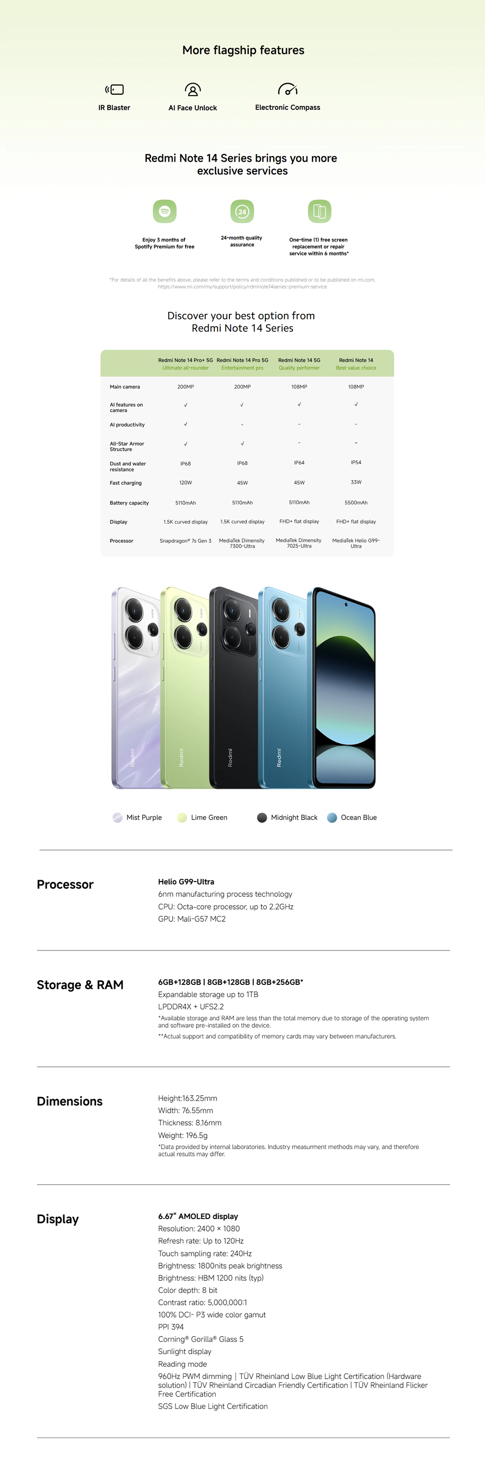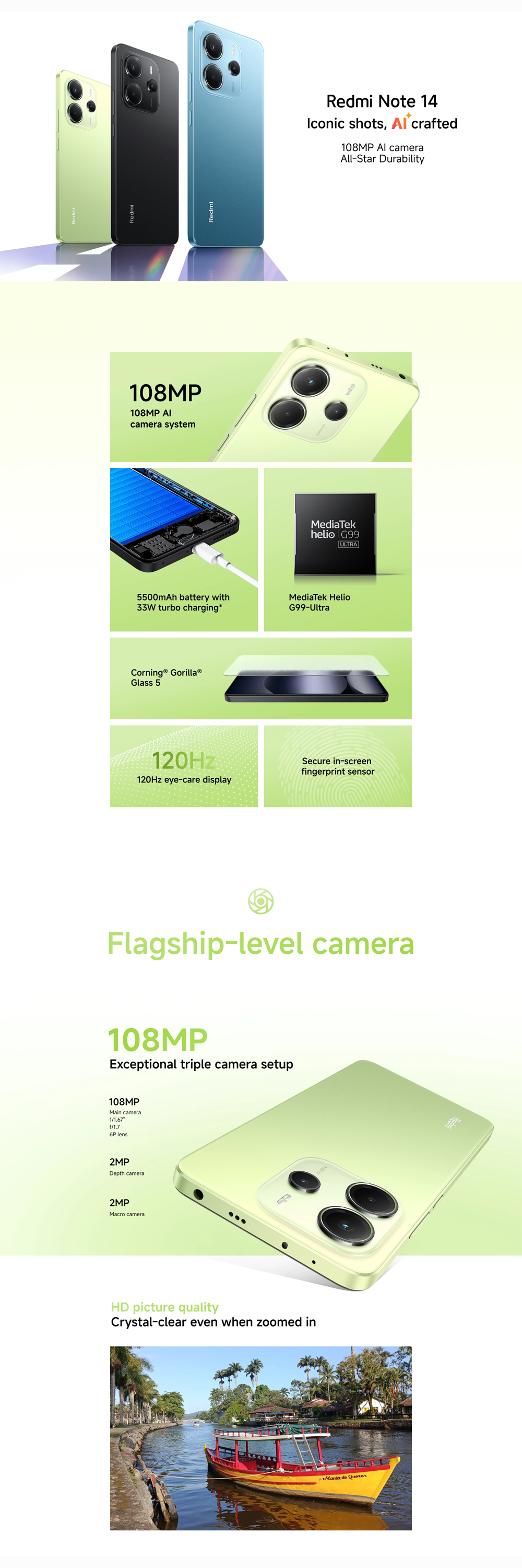 Xiaomi Redmi Note 14 | MediaTek Helio G99-Ultra | 120Hz Eye-Care Display | 108MP AI Camera System