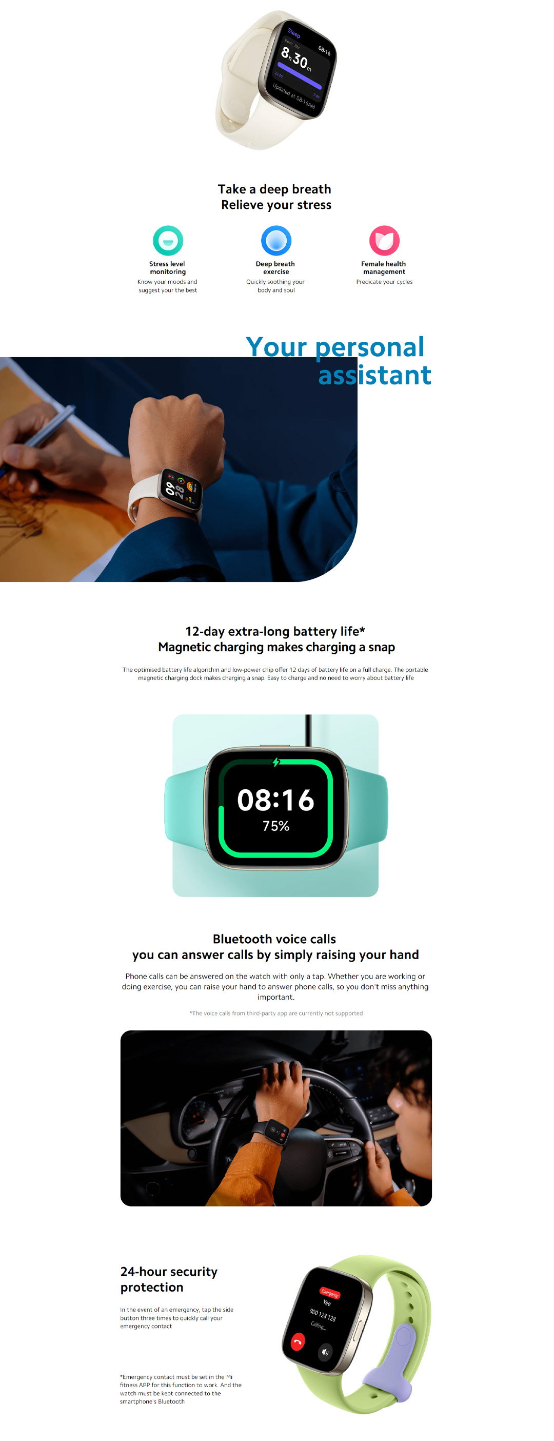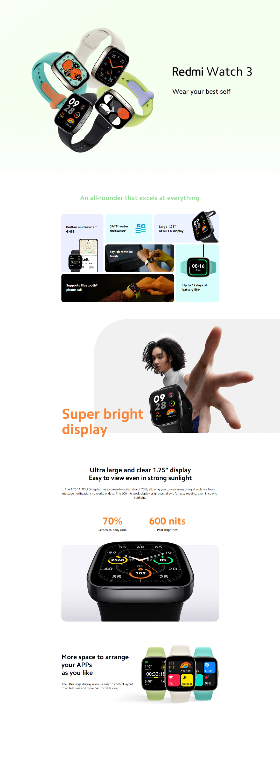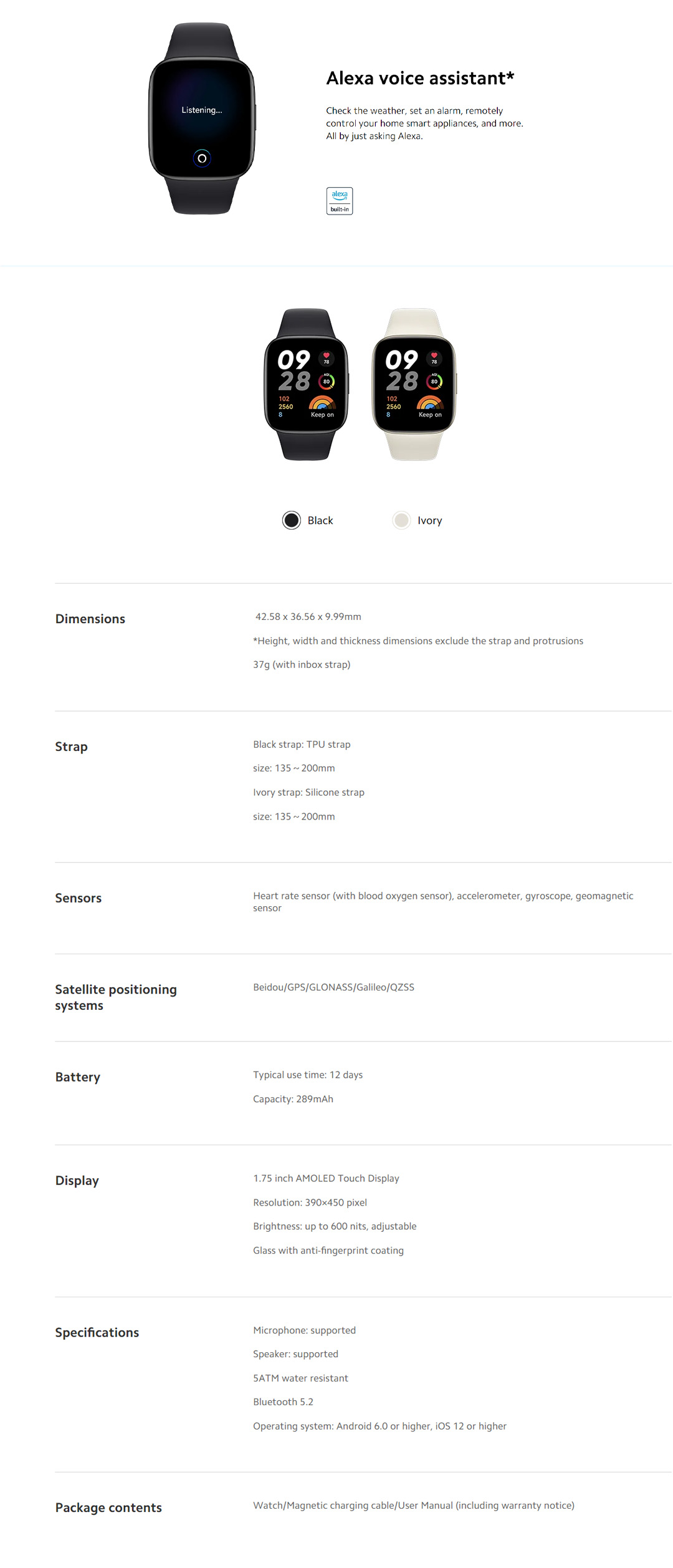 Xiaomi Redmi Watch 3 | 1.75" AMOLED Display | Up to 12 Days of Battery Life | 5ATM Water Resistance | 120+ Workout Modes | Smart Watch with 1 Year Warranty