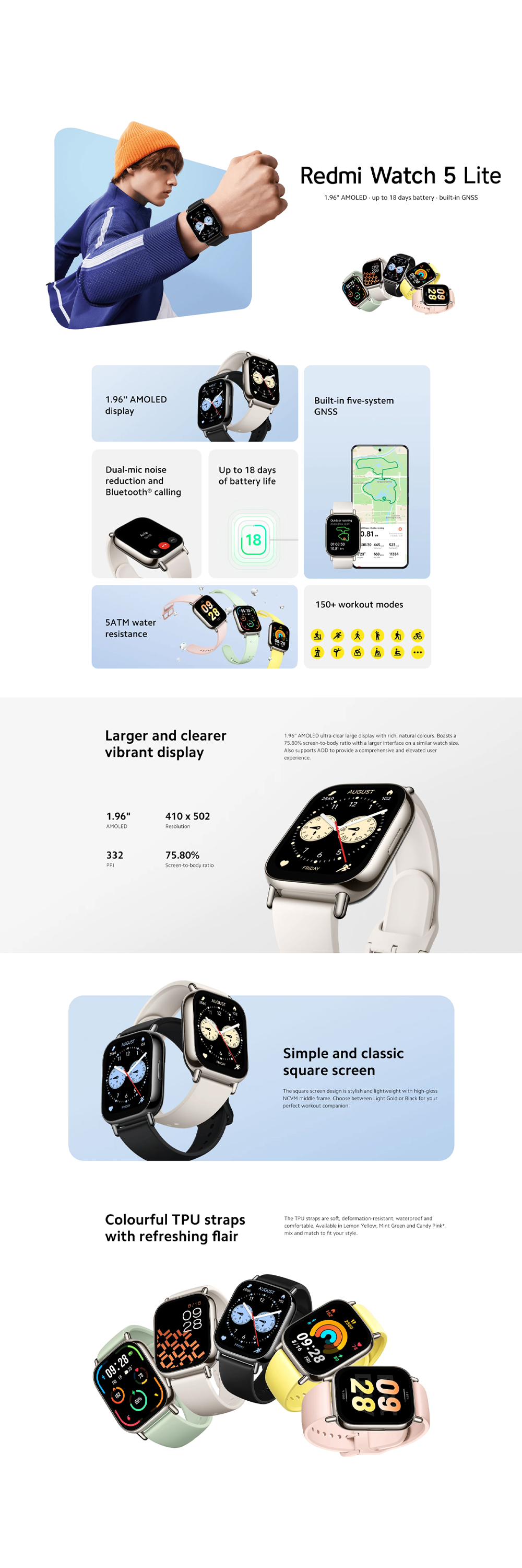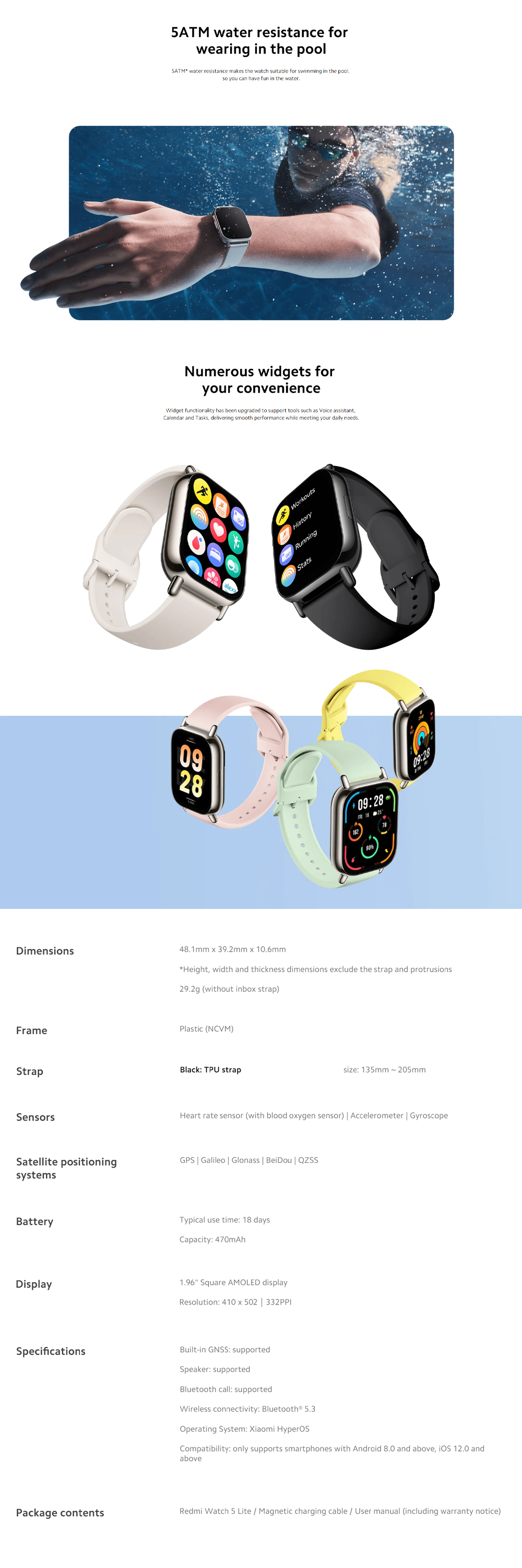 Xiaomi Redmi Watch 5 Lite | 1.96" AMOLED | up to 18 days battery | built-in GNSS