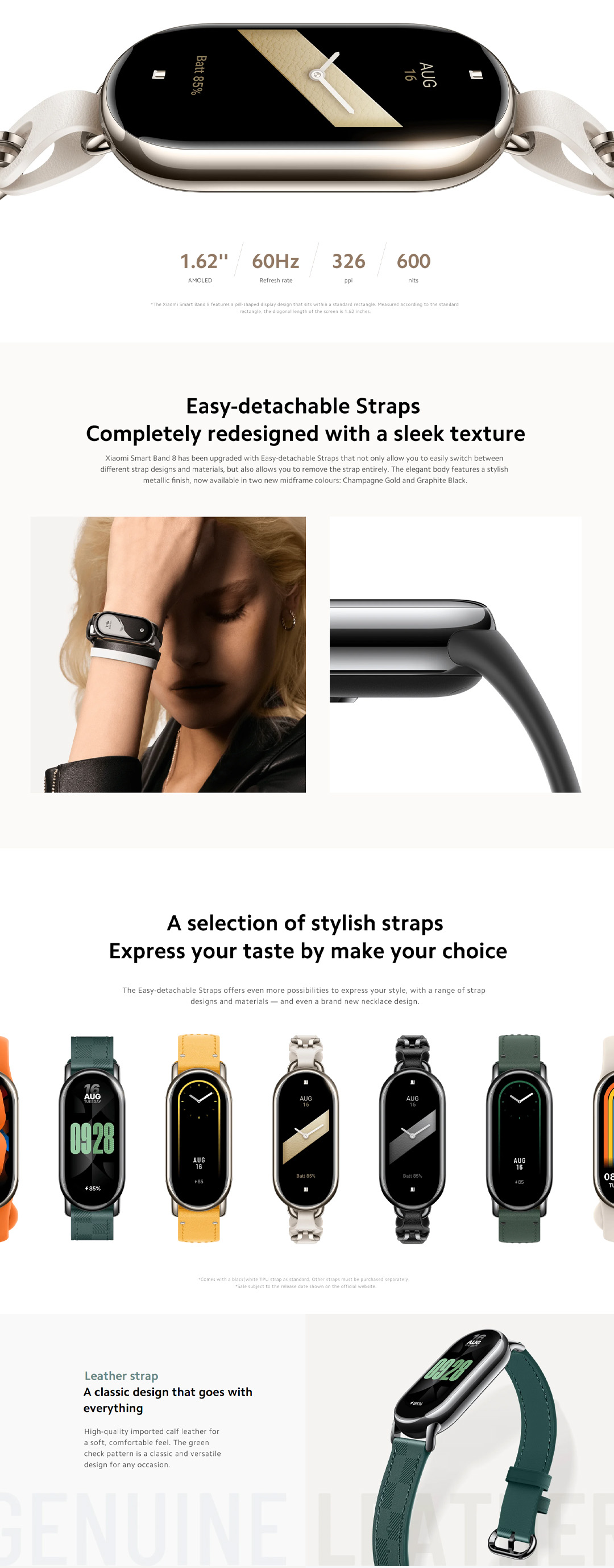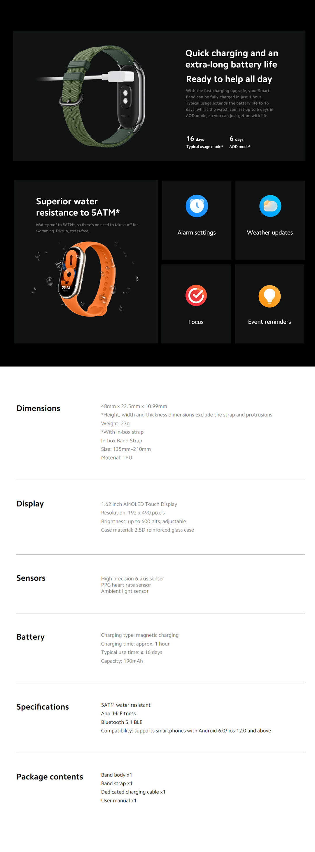 Xiaomi Smart Band 8 | 1.62 inch AMOLED Touch Display | Metallic Midframe | Up to 16 Day with Typical Mode | Focus Mode | Smart Band with 1 Year Warranty