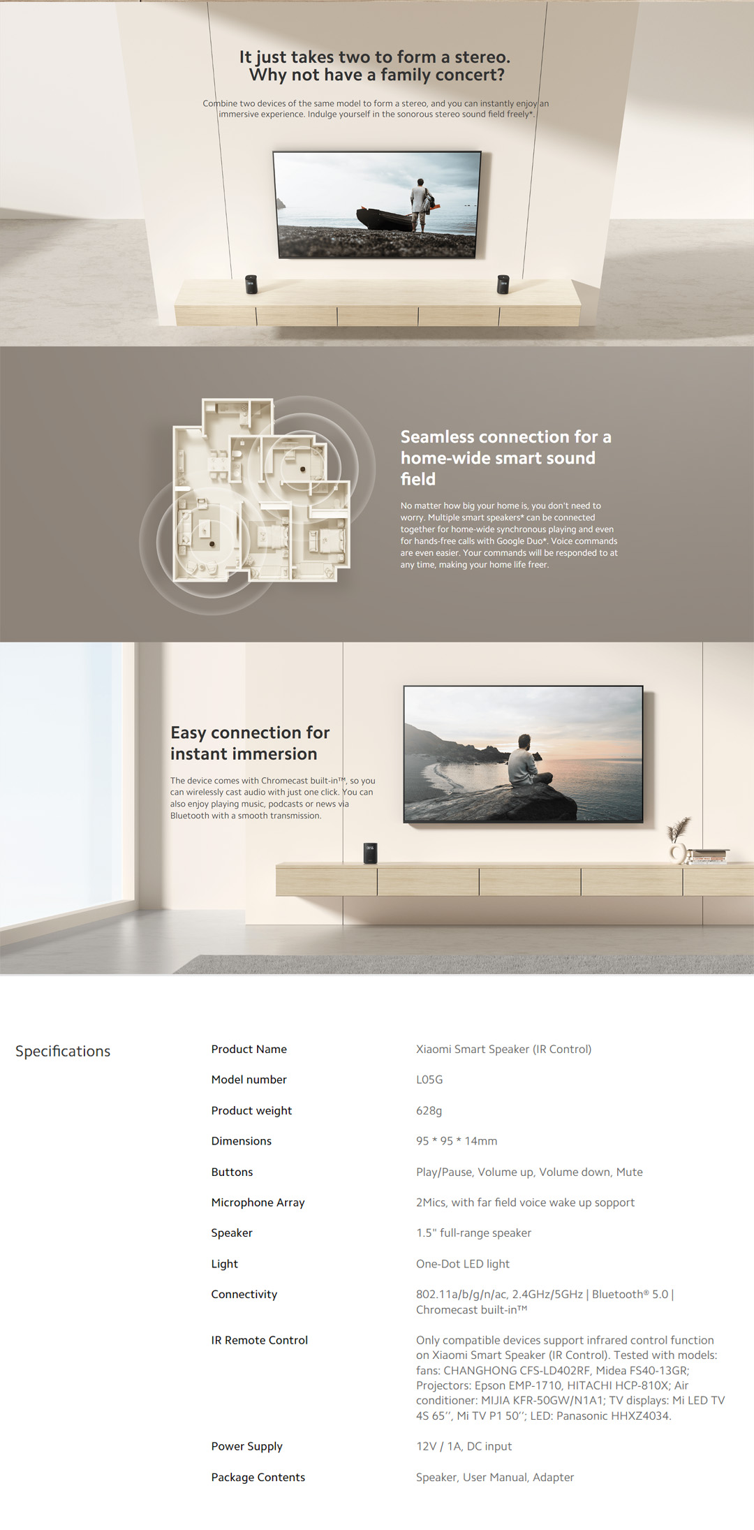 Xiaomi Smart Speaker IR Control L05G | Balanced Sound Field | Google Assistant Built-in | Smart Home Control Center | Speaker with 1 Year Warranty