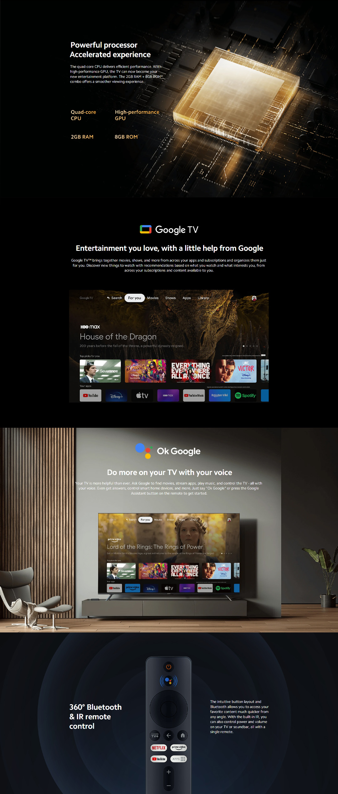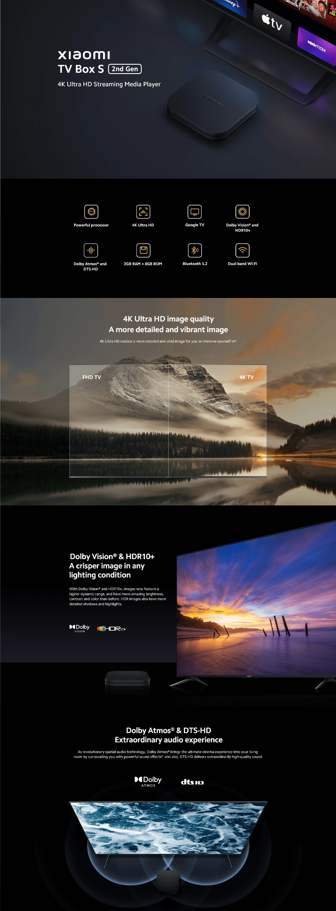 ● Dolby Vision® and HDR10+ ● Dolby Atmos® and DTS-HD ● 2GB RAM + 8GB ROM