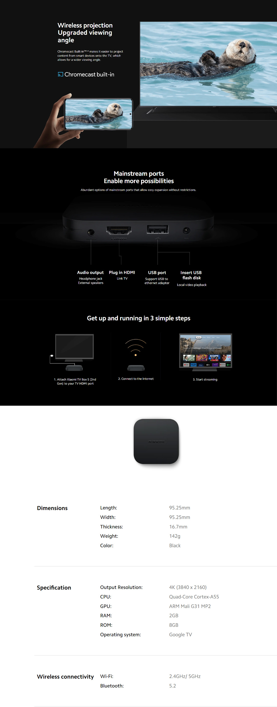 Xiaomi TV Box S (2nd Gen) | Powerful Processor | 4K Ultra HD | Bluetooth 5.2 | Google TV | Dual-band Wi-Fi | TV Box with 1 Year Warranty