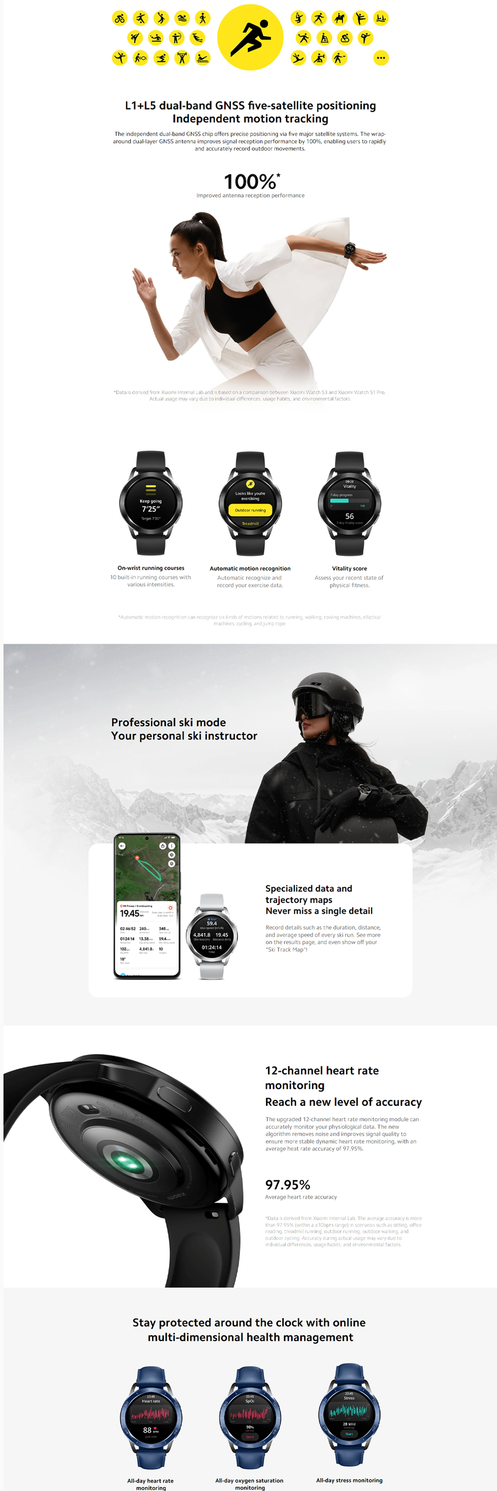 Supports 150+ Sports Modes, Built-in L1+L5 Dual-Band GNSS