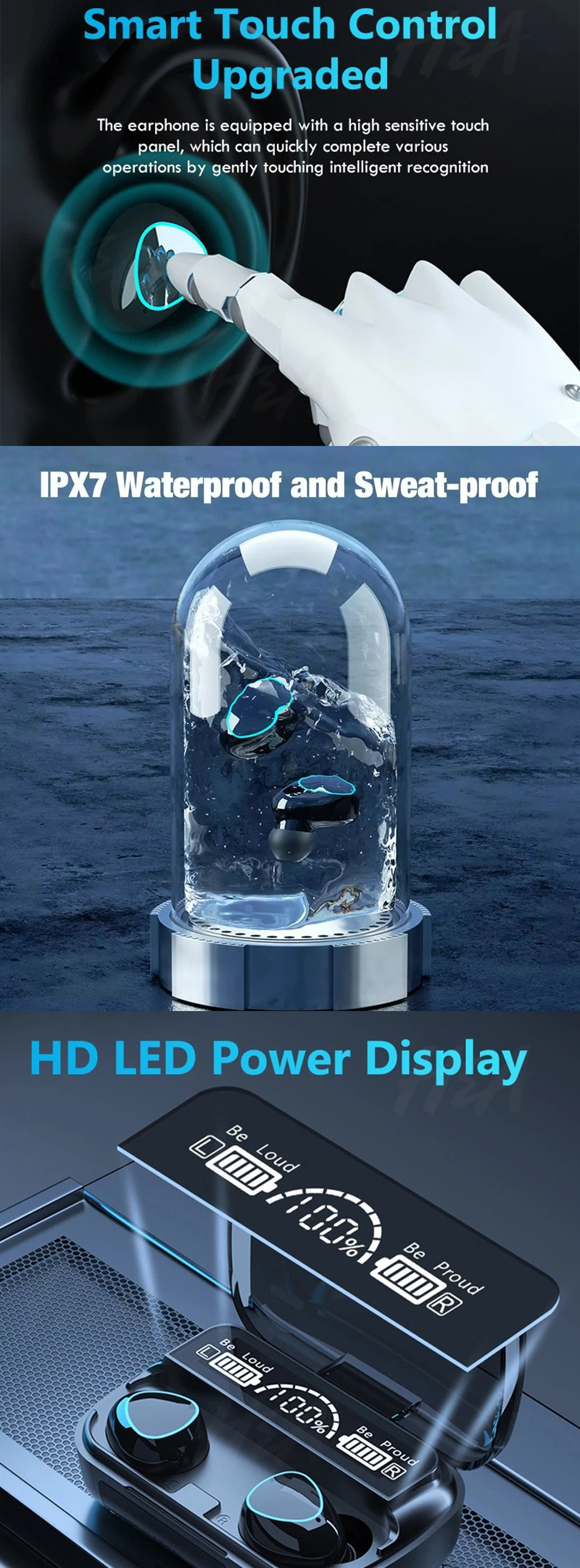 ZSB M10 TWS Bluetooth Wireless Earbuds | Smart Touch Control | IPX7 Waterproof | Sweat-Proof | HD LED Power Display | Earbuds with 3 Month Warranty
