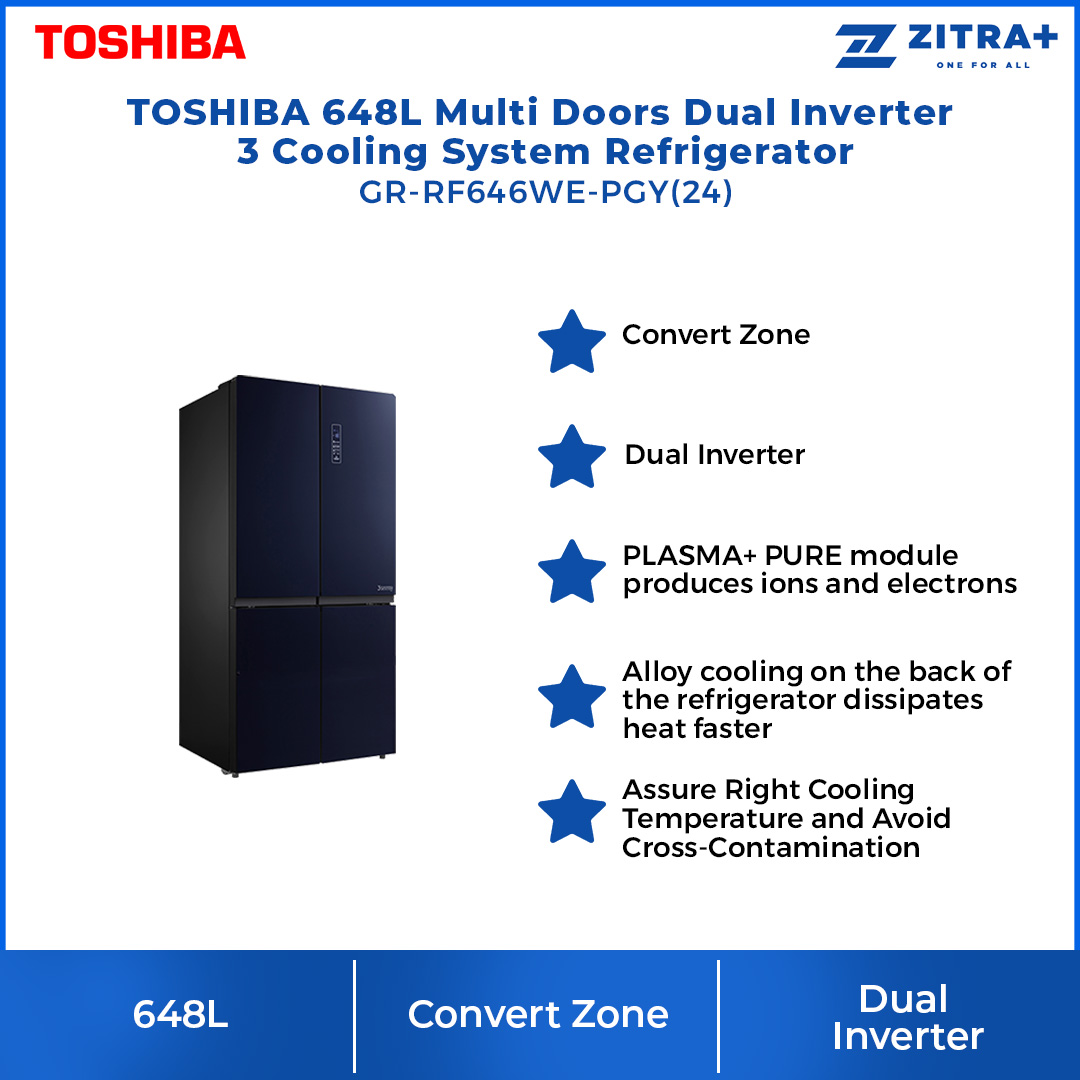 Sharp 800L Multi Doors J-Tech Inverter Hikaru Refrigerator SJF879GK | Flexi Room | Touch Control Door Panel | Auto Ice Maker | Plasmacluster Ion Technology | Actifresh Hybrid Cooling Technology | Refrigerator with 1 Year General & 12 Year Motor Warranty
