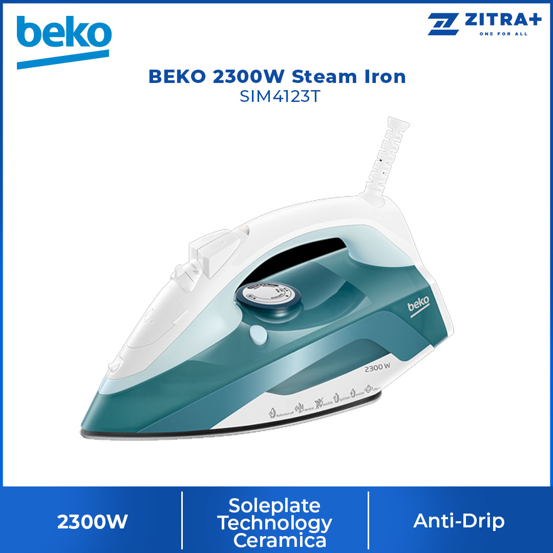 Beko 2300W Steam Iron SIM4123T | Ceramica Soleplate | Shock Steam | Continuous Steam | Anti-drip | Auto Shut-off | Anti-calc Function | Iron with 2 Years Warranty