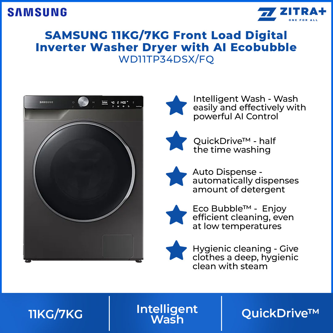 TOSHIBA 11KG/7KG Front Load THE GREATWAVES Real Inverter Washer Dryer TWD-BJ120M4M | 12 minutes Quick Wash CycloneMix™ | Washer Dryer with 2 Year General & 10 Year Motor Warranty