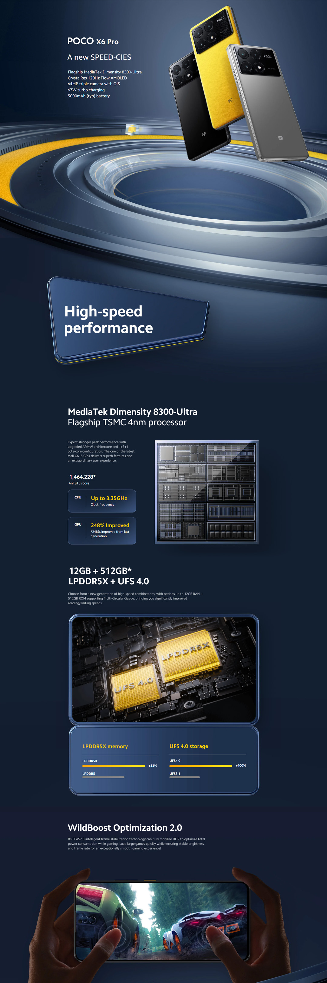 Xiaomi POCO X6 Pro | 8GB+256GB / 12GB+ 512GB | Flagship MediaTek Dimensity 8300-Ultra | CrystalRes 120Hz FIow AMOLED | 64MP Triple Camera with OIS | Smartphone with 1 Year Warranty
