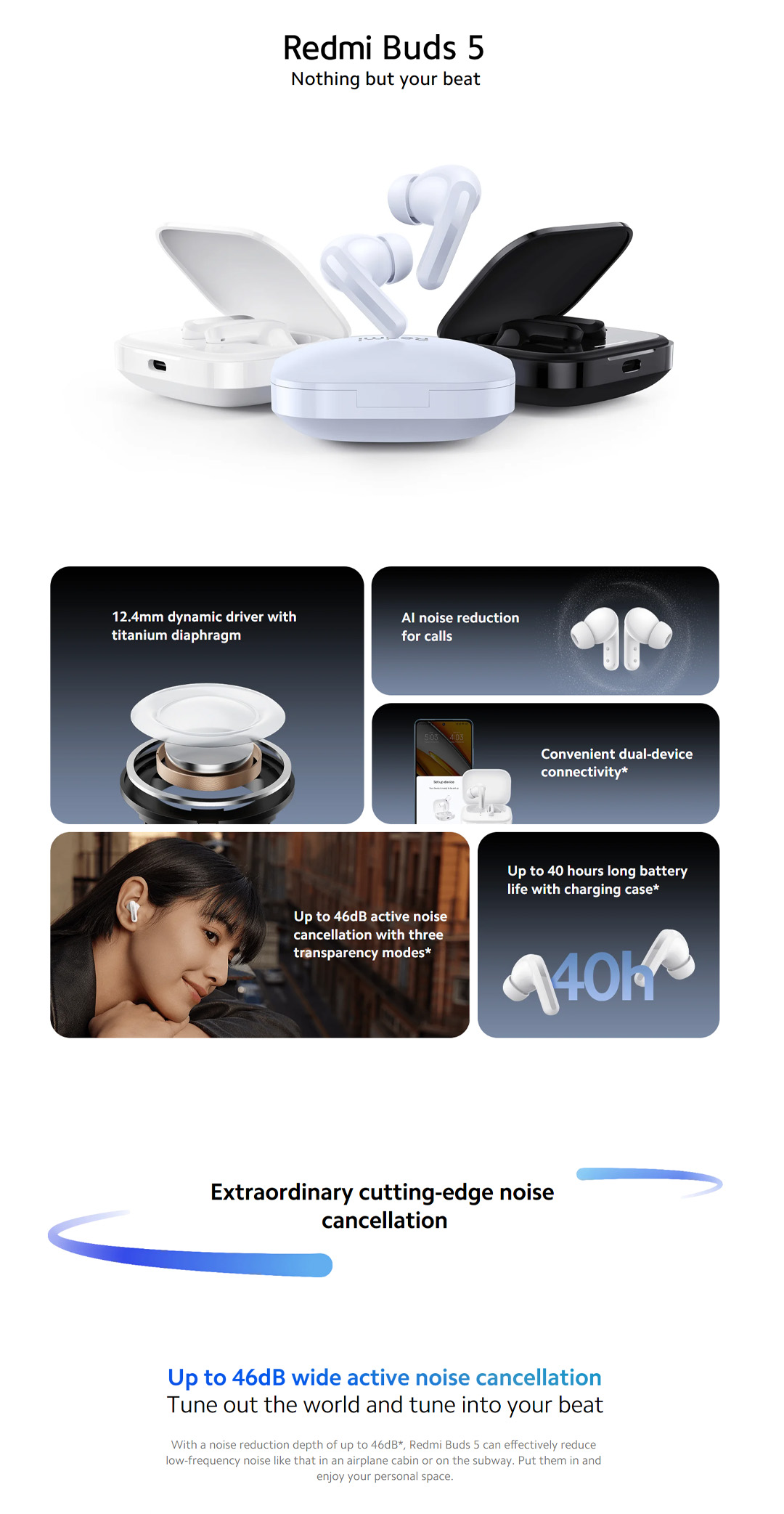 Xiaomi Redmi Buds 5 | AI Noise Reduction for Calls | Ultimate Hi-Fi Sound | Audio Balance | Earbud with 1 Year Warranty