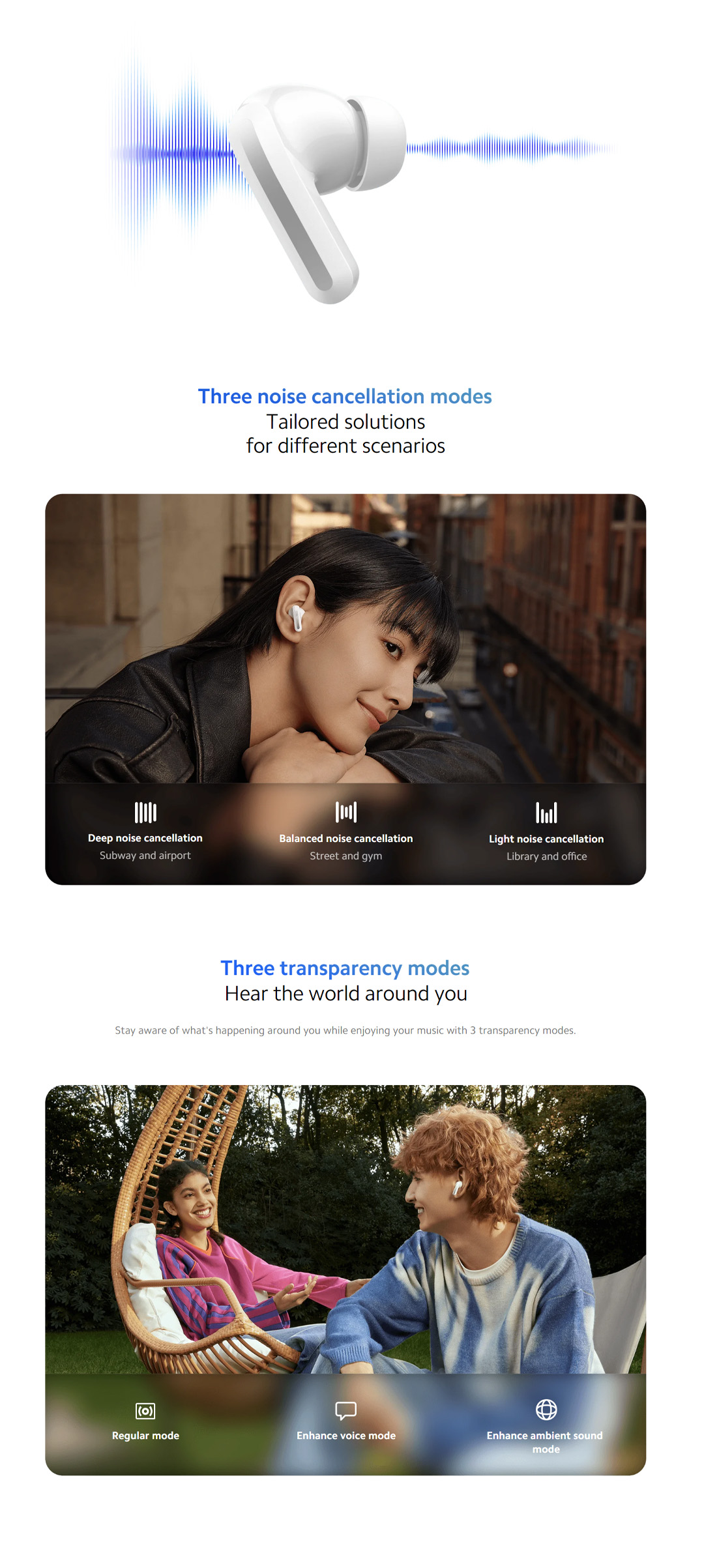 • Three noise cancellation modes