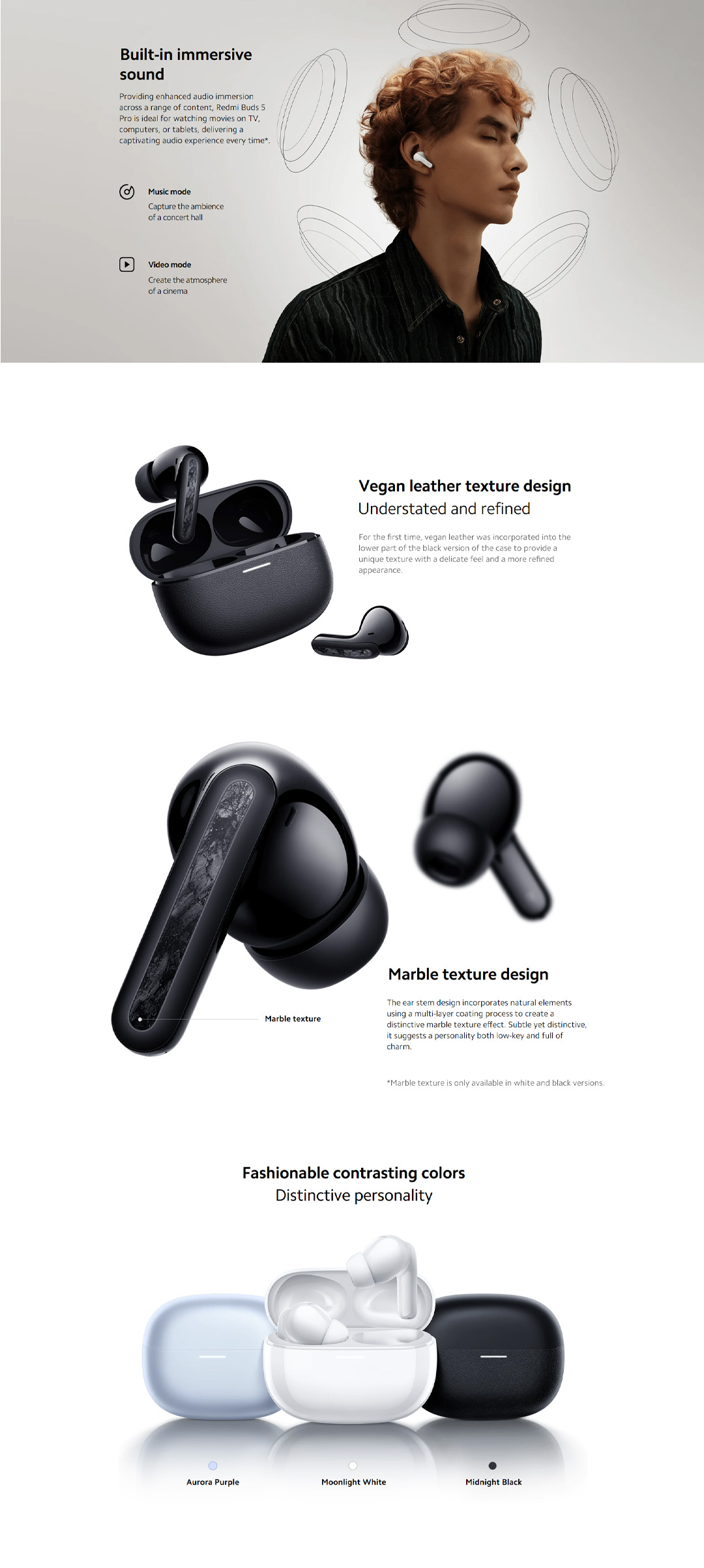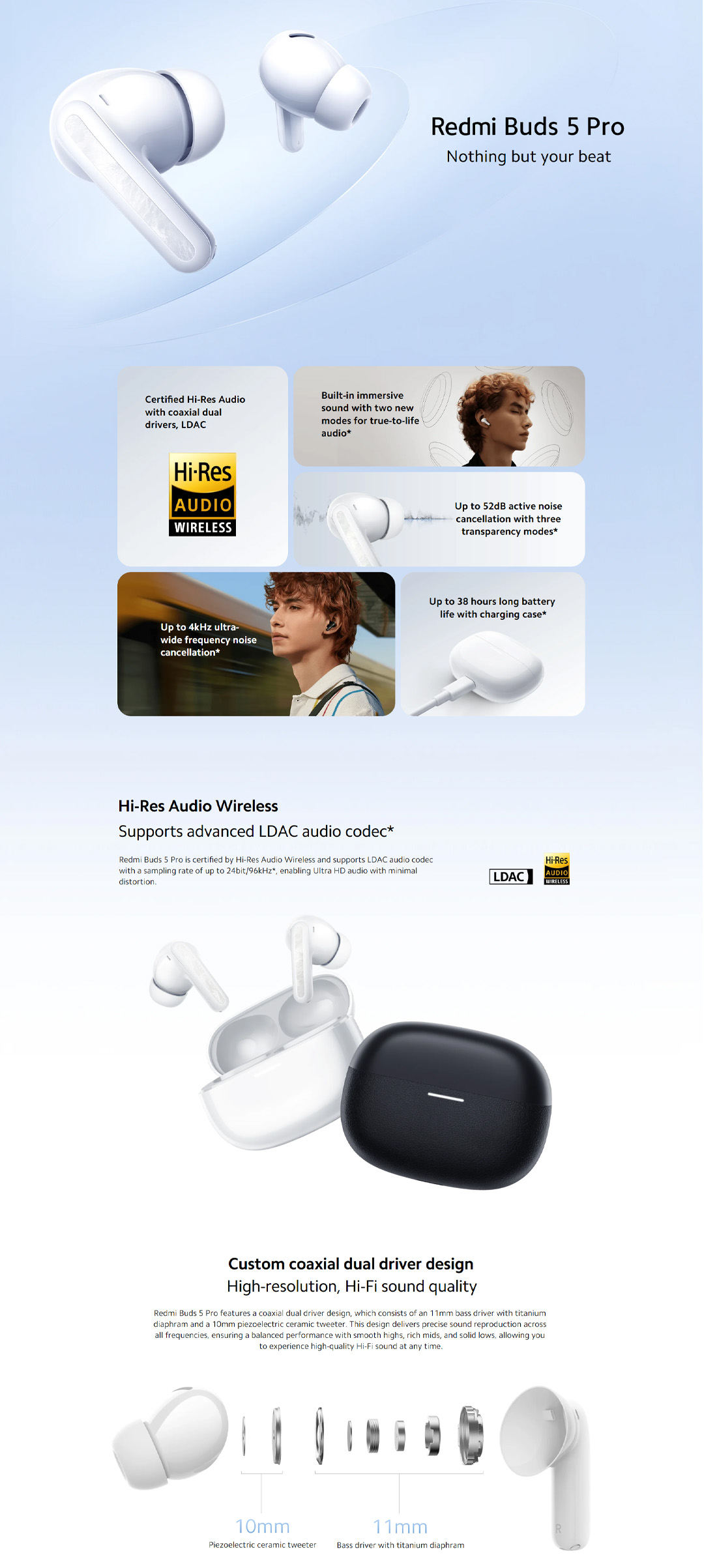 Xiaomi Redmi Buds 5 Pro | 3 Microphone + AI Noise Cancellation For Calls | Hi-Res Audio Wireless | Touch Control | Earbud with 1 Year Warranty