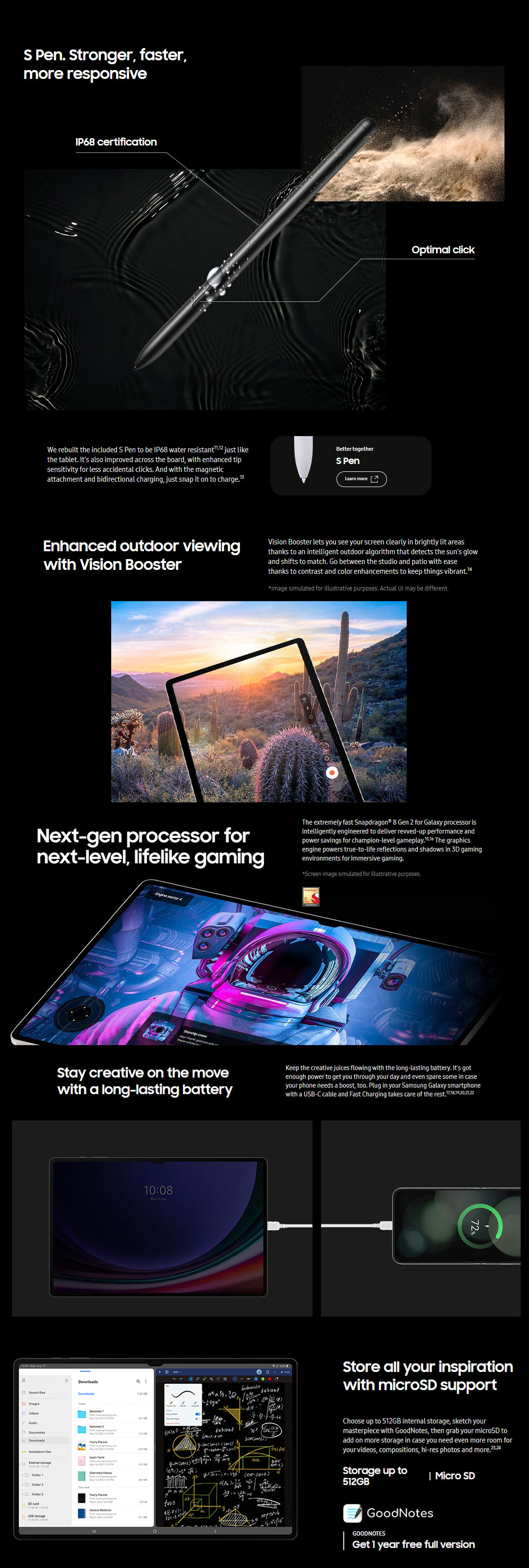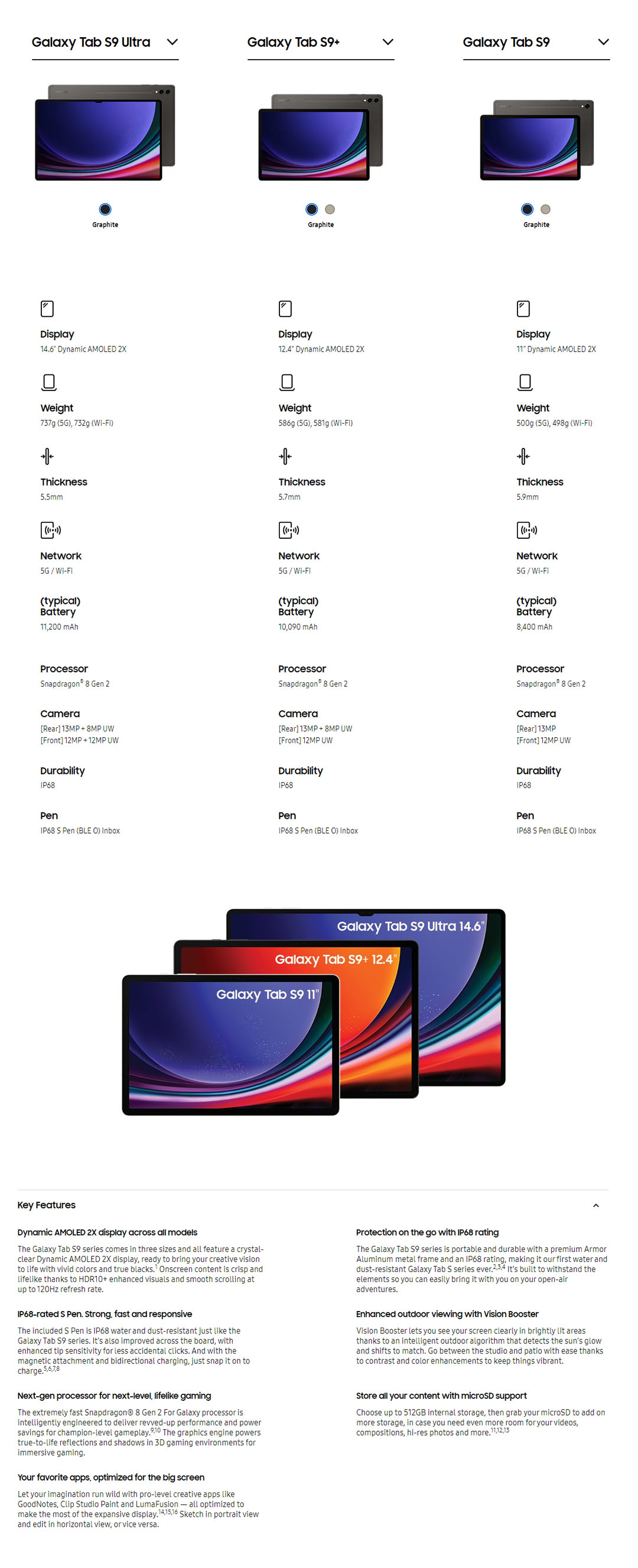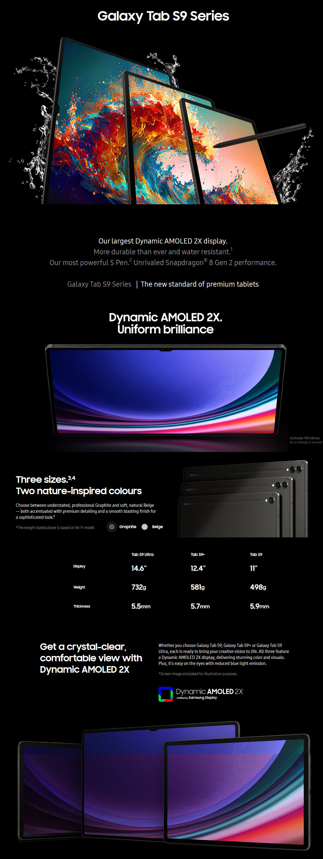 SAMSUNG Galaxy Tab S9 Wi-Fi | 8GB+128GB/12GB+256GB | 11.0" AMOLED 2X Display | 8400mAh Battery | 13MP Main Camera | Tablet with 1 Year Warranty