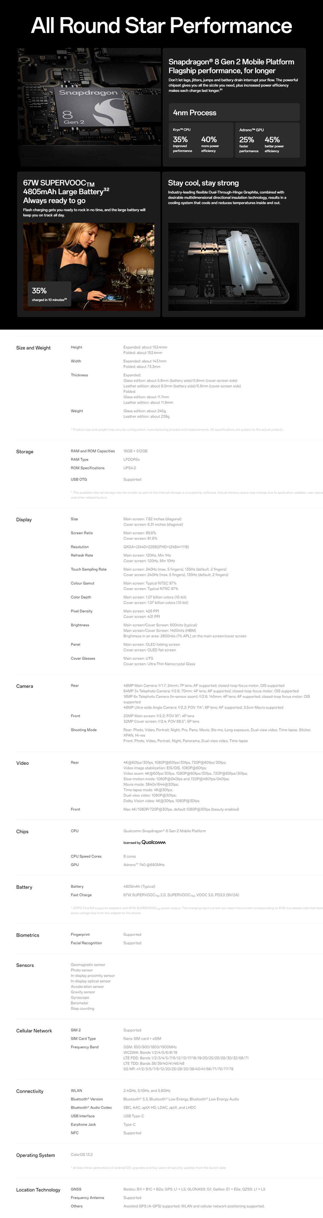 OPPO Find N3 16GB+512GB | 7.82" LTP03 OLED | 64MP Main Camera | 4805mAh Battery | NFC | Smartphone with 1 Year Warranty