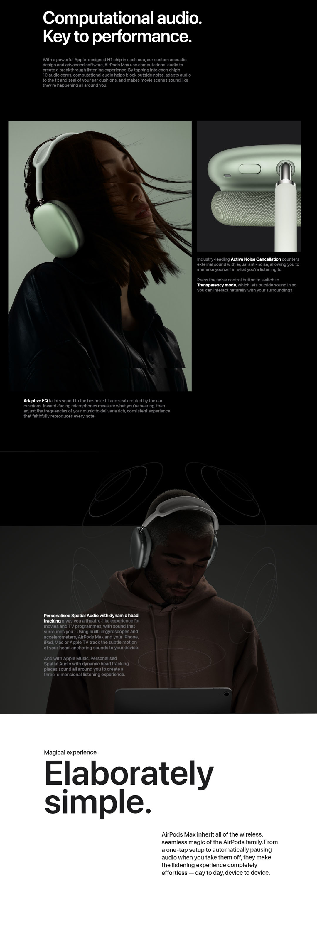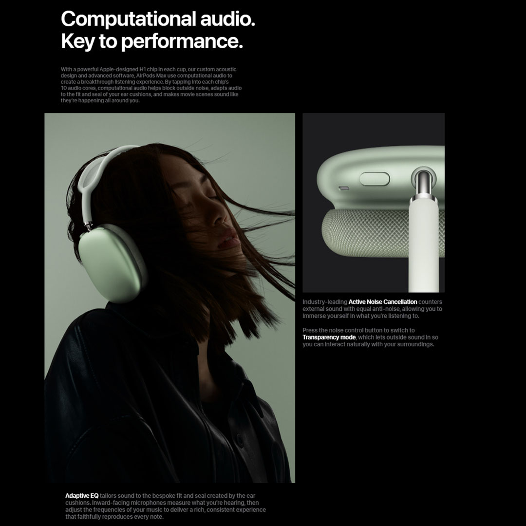 · Computational audio combines custom acoustic design with the Apple H1 chip