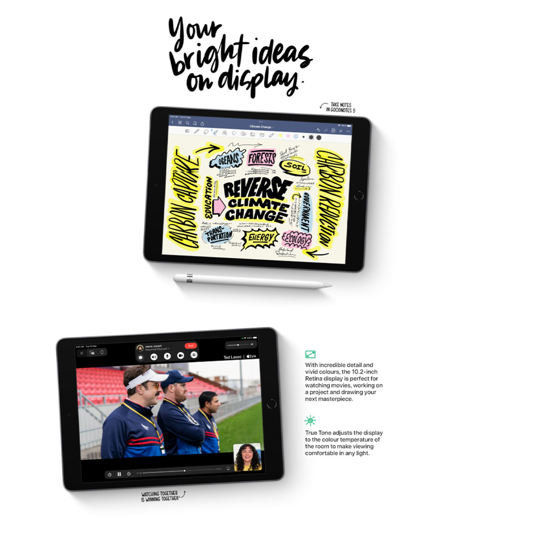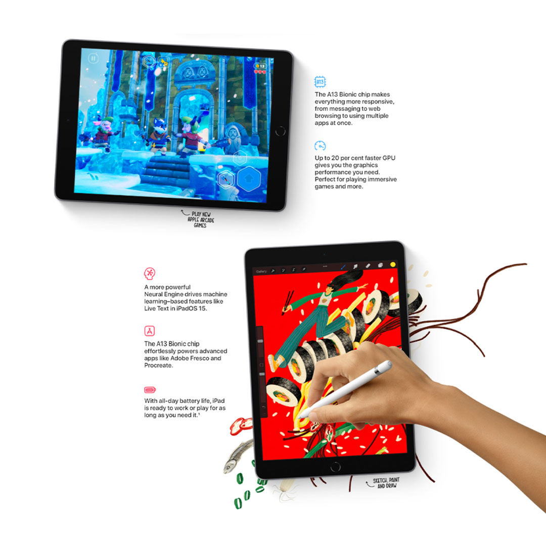 Apple iPad 10.2-inch (9th Generation) 2021 | 10.2" Retina Display | A13 Bionic chip with Neural Engine | Stereo Speakers | Tablet with 1 Year Warranty