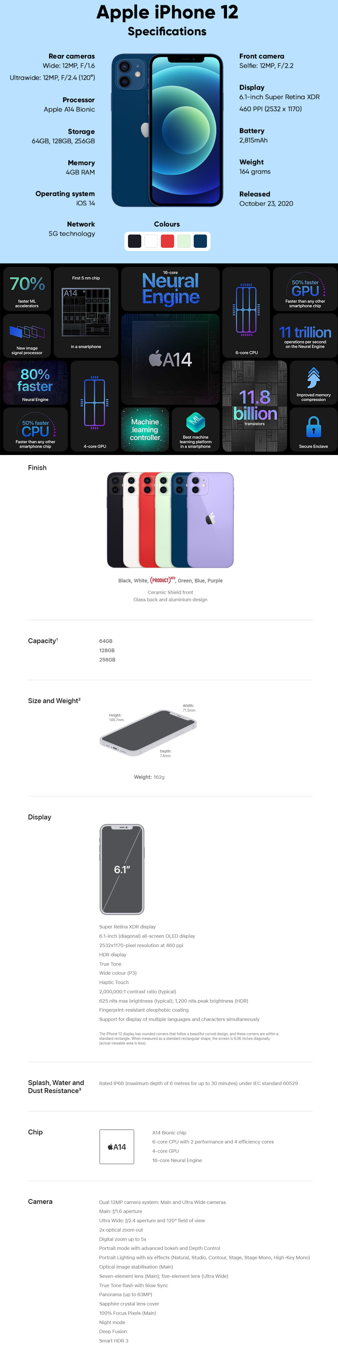 Apple iPhone 12 | 6.1" Super Retina XDR Display | A14 Bionic Chip | Ceramic Shield | Smartphone with 1 Year Warranty