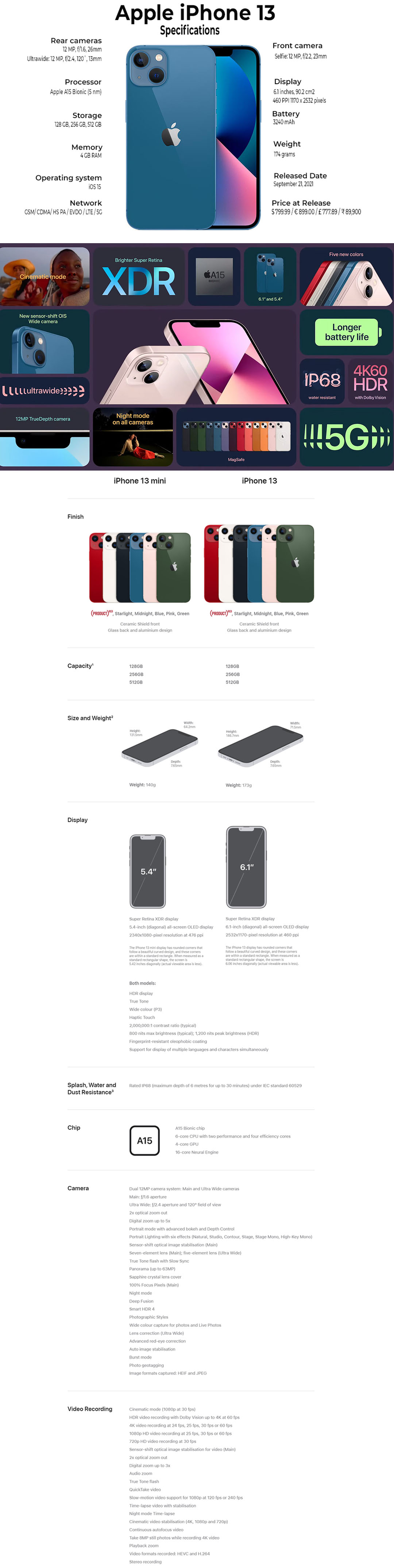 Apple iPhone 13 | 6.1" Super Retina XDR Display | A15 Bionic Chip | IP68 Water Resistance | Smartphone with 1 Year Warranty