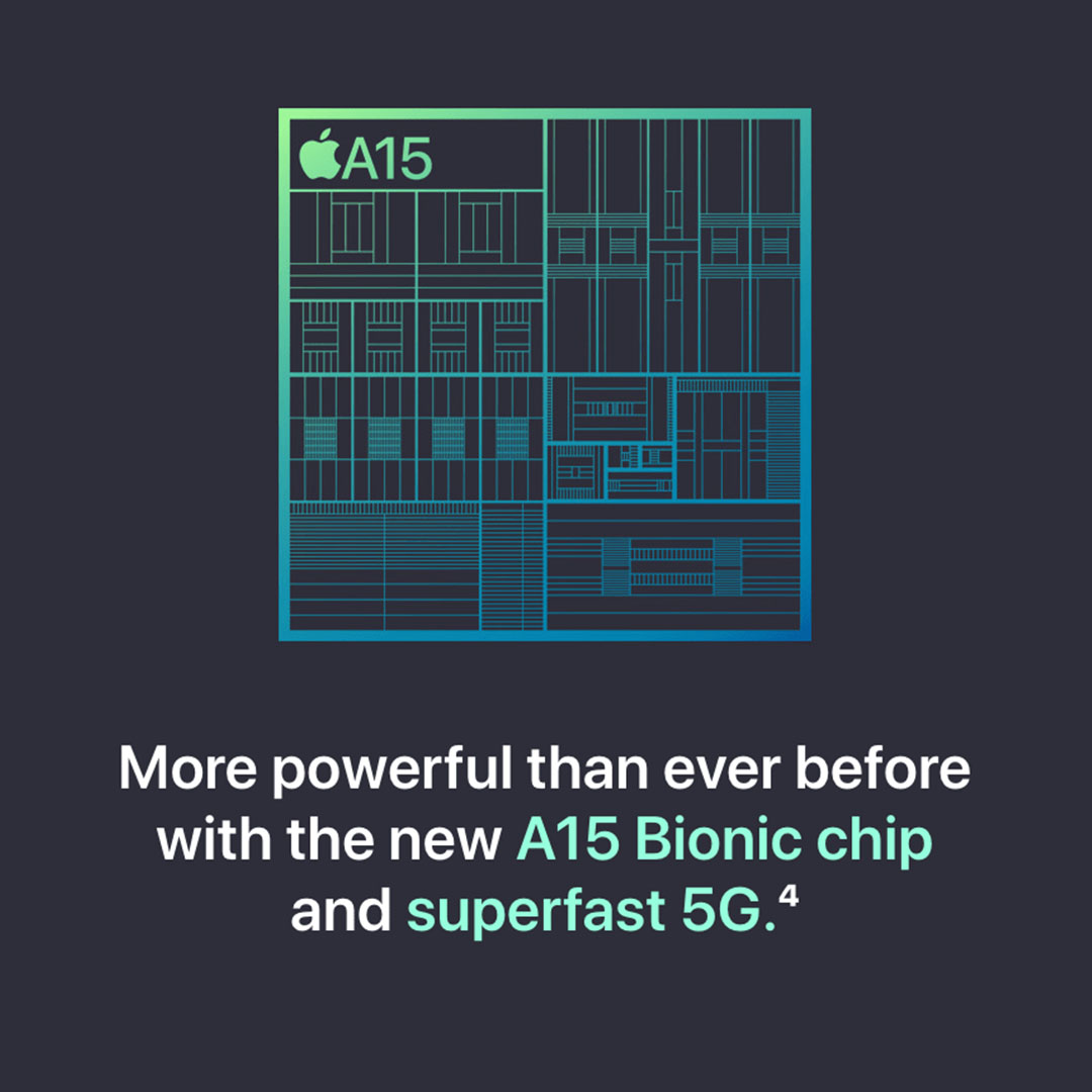 · A15 Bionic chip for lightning-fast performance