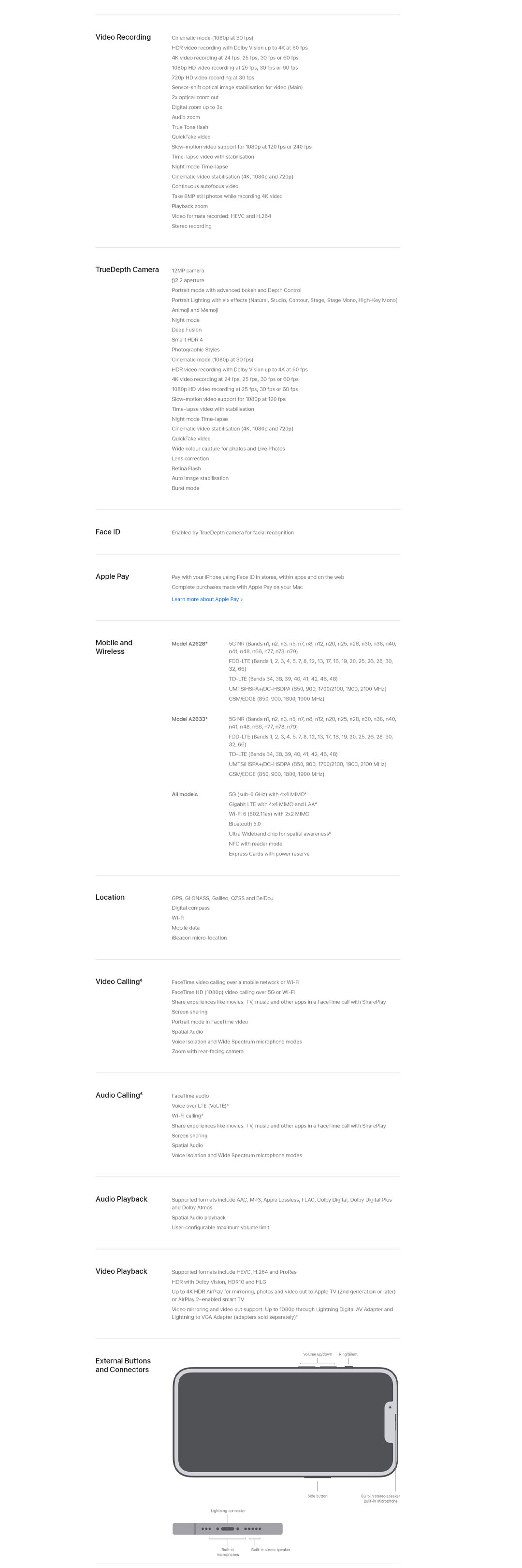 · 12MP TrueDepth front camera with Night mode, 4K Dolby Vision HDR recording