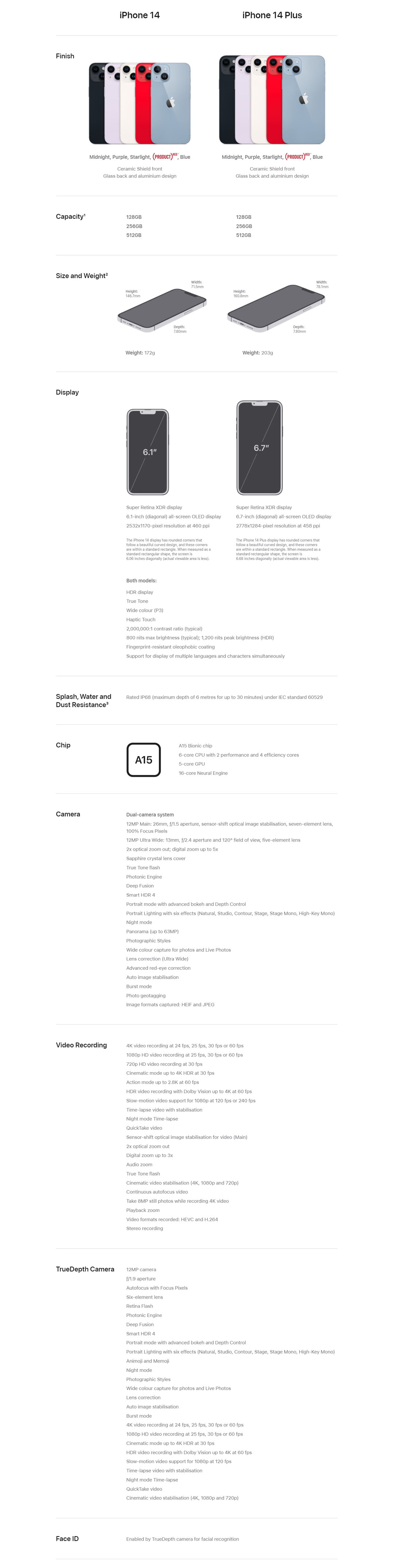Apple iPhone 14 Plus | 6.7" Super Retina XDR Display | A15 Bionic Chip | 4K Dolby Vision | Smartphone with 1 Year Warranty