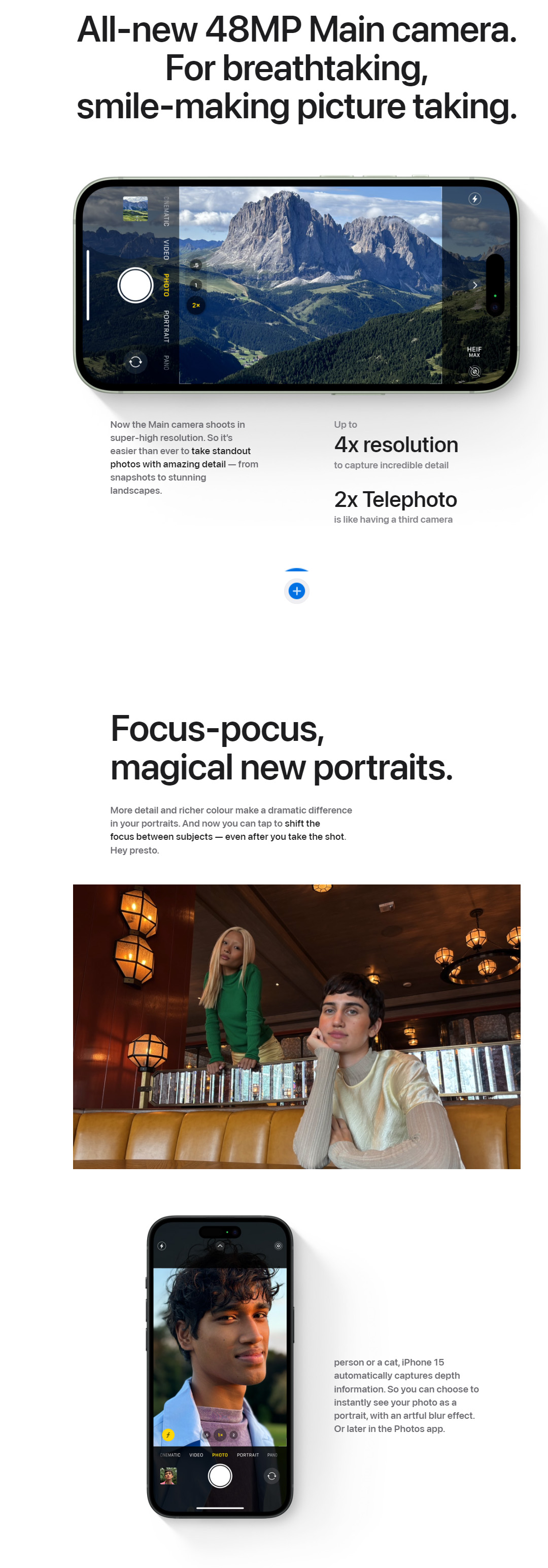 Apple iPhone 15 | 6.1" Super Retina XDR OLED Display | 48MP Main Camera | A16 Bionic Chip | USB-Compatible | Crash Detection | Smartphone with 1 Year Warranty
