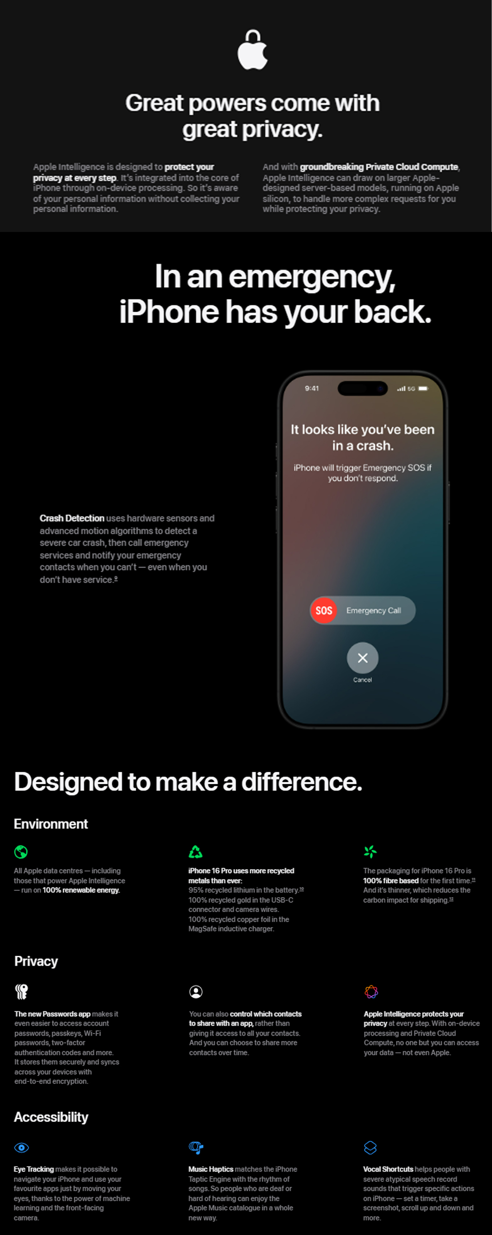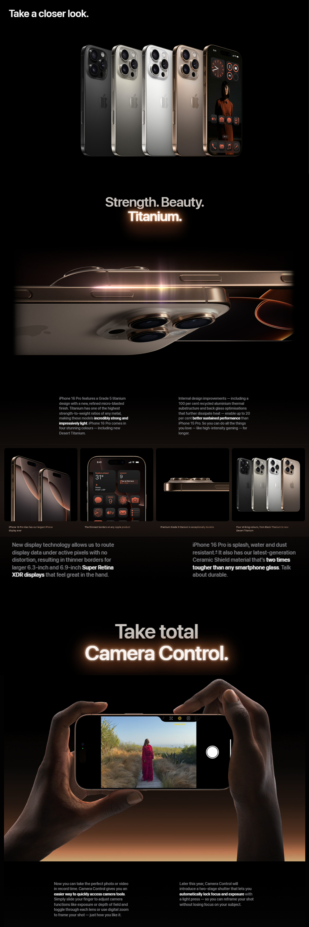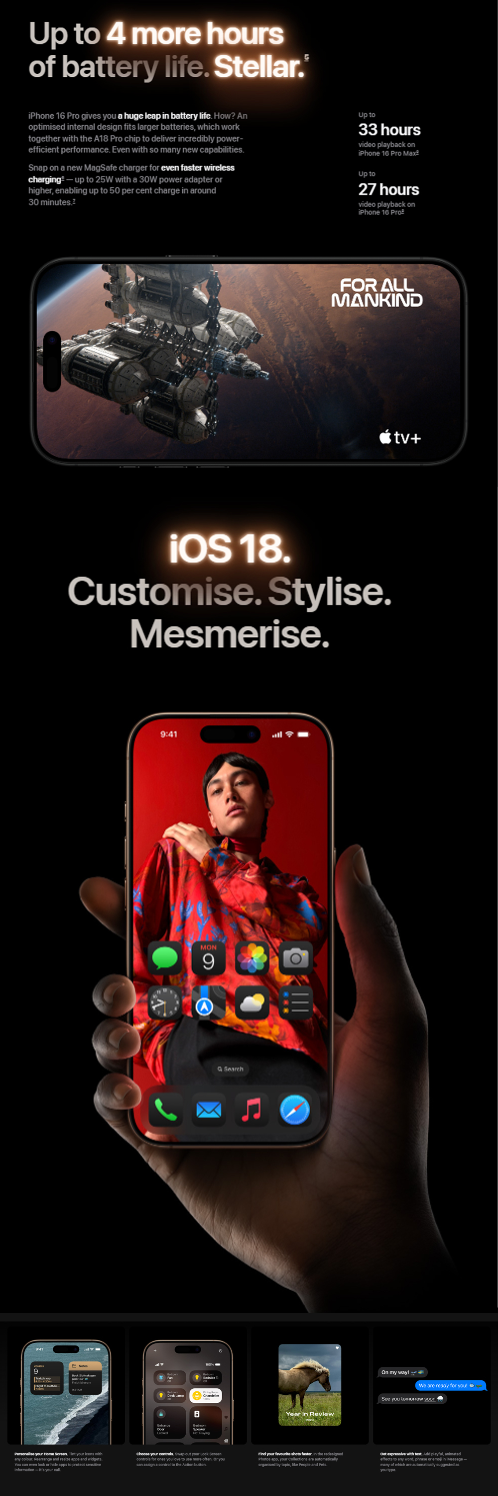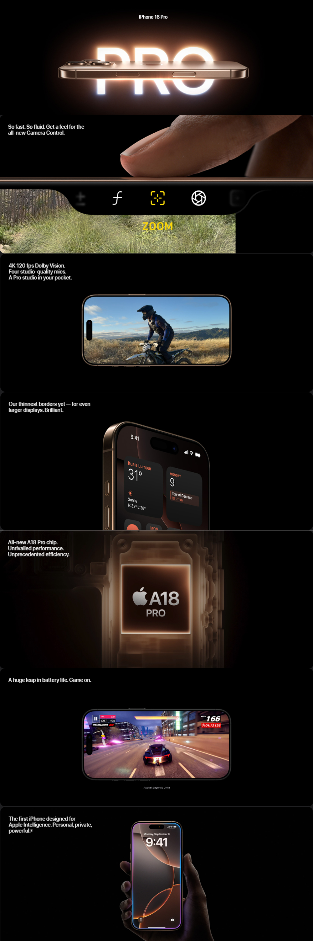 Apple iPhone 16 Pro | 6.3" LTPO Super Retina XDR OLED | 48 MP Main Camera | Apple A18 Pro (3 nm) | USB Type-C 3.2 Gen 2, DisplayPort | Stereo Speakers Sound | Smartphone with 1 Year Warranty