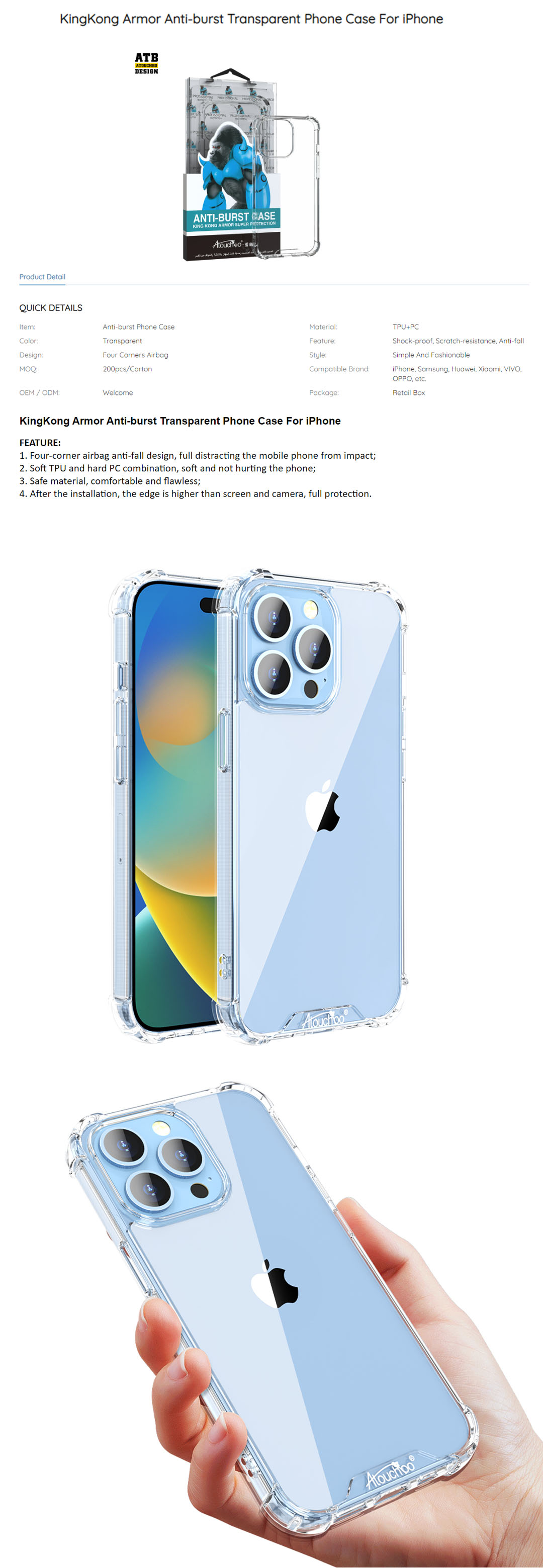 • Four-corner airbag anti-fall design, full distracting the mobile phone from impact;