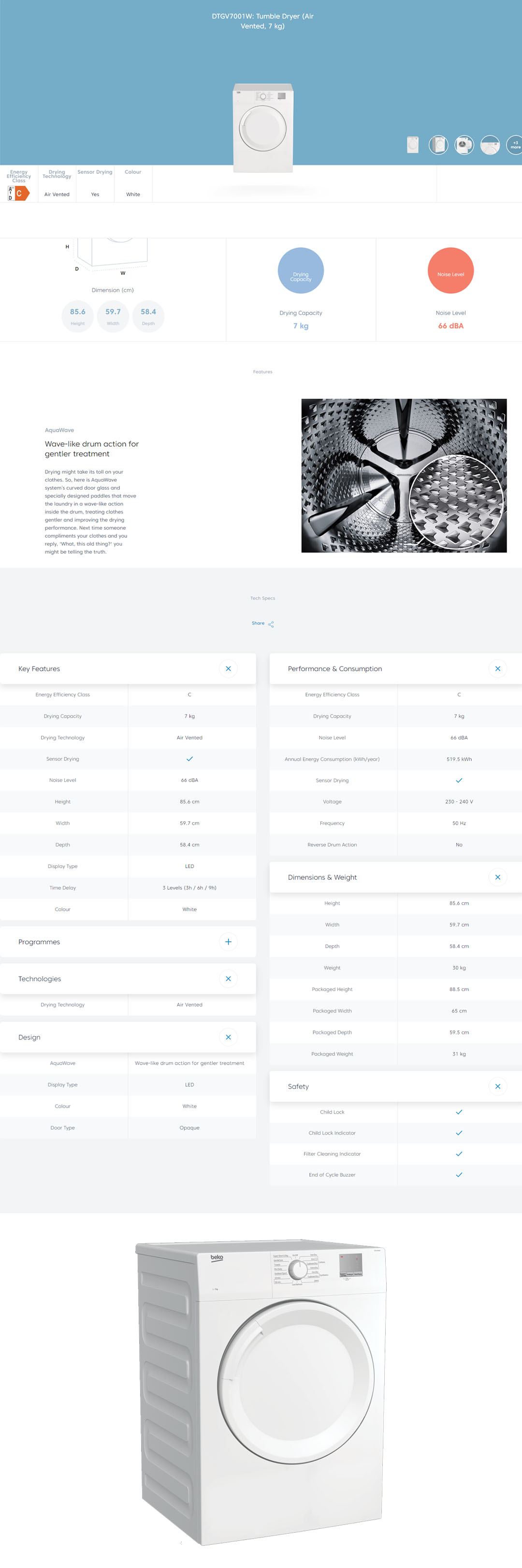 Beko 7KG Tumble Dryer DTGV7001W | Air Vented Drying Technology | Time Delay | 15 Programs Selection | Child Lock | Filter Cleaning Indicator | Tumble Dryer with 2 Years General Warranty & 12 Years Motor Warranty