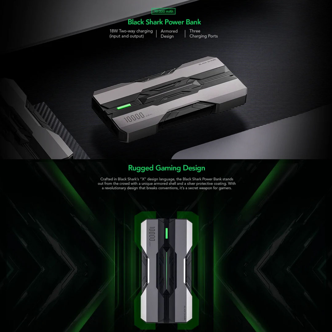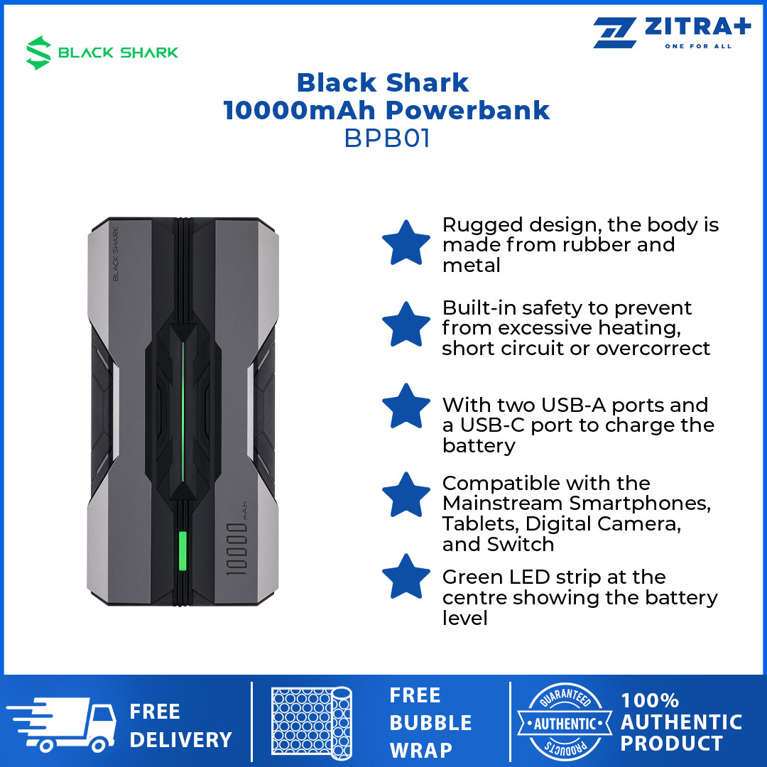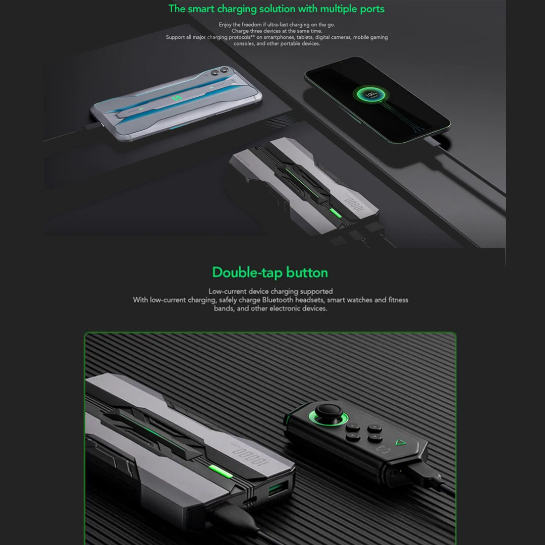 Black Shark 10000mAh Powerbank (Chinese version) BPB01 | Rugged Design | Built-in Safety | Two USB-A Ports and a USB-C Port | Mobile Accessories with 1 Year Warranty