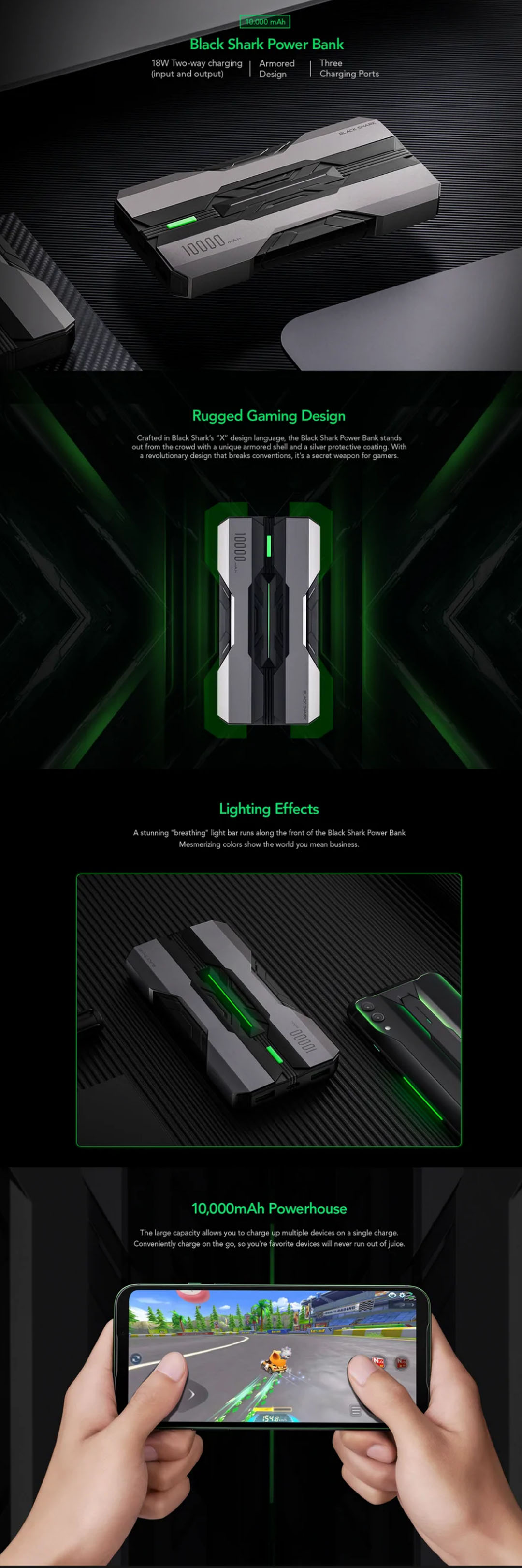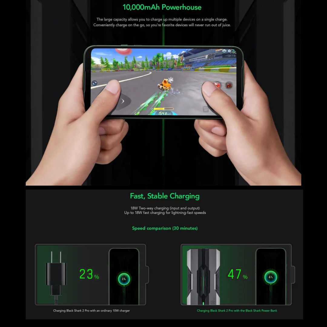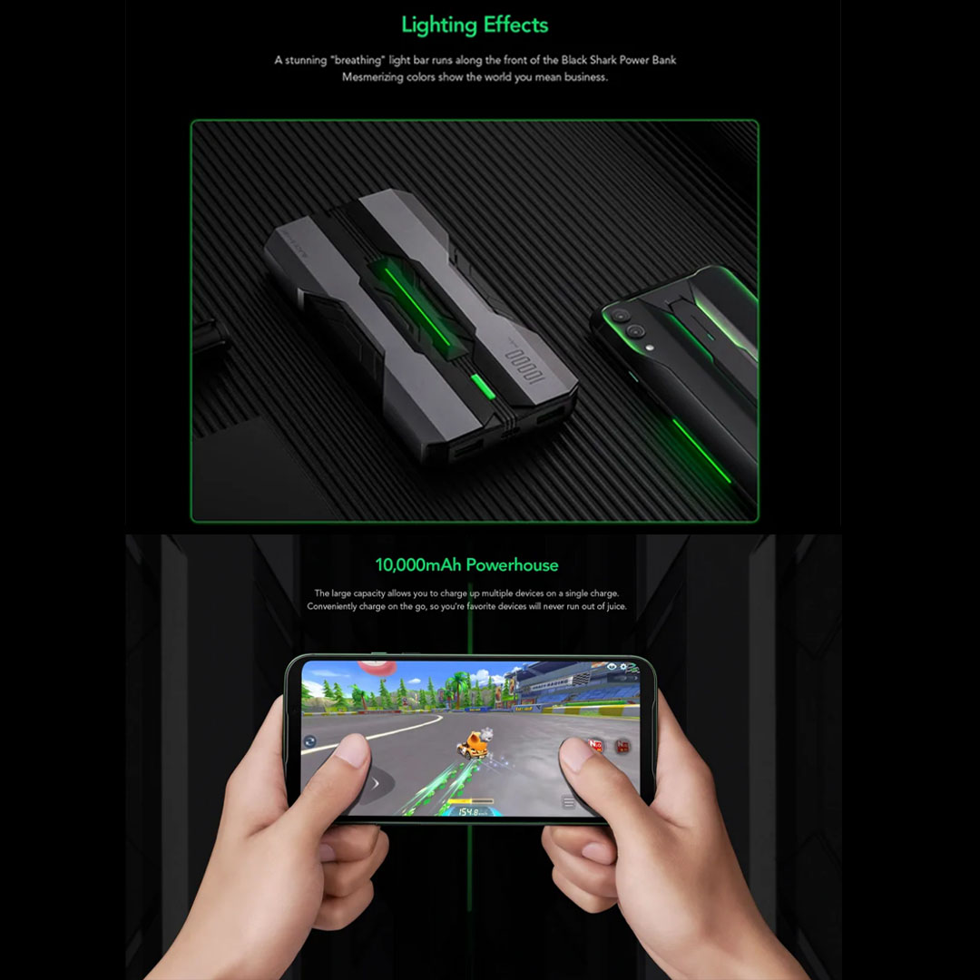 Black Shark 10000mAh Powerbank (Chinese version) BPB01 | Rugged Design | Built-in Safety | Two USB-A Ports and a USB-C Port | Mobile Accessories with 1 Year Warranty