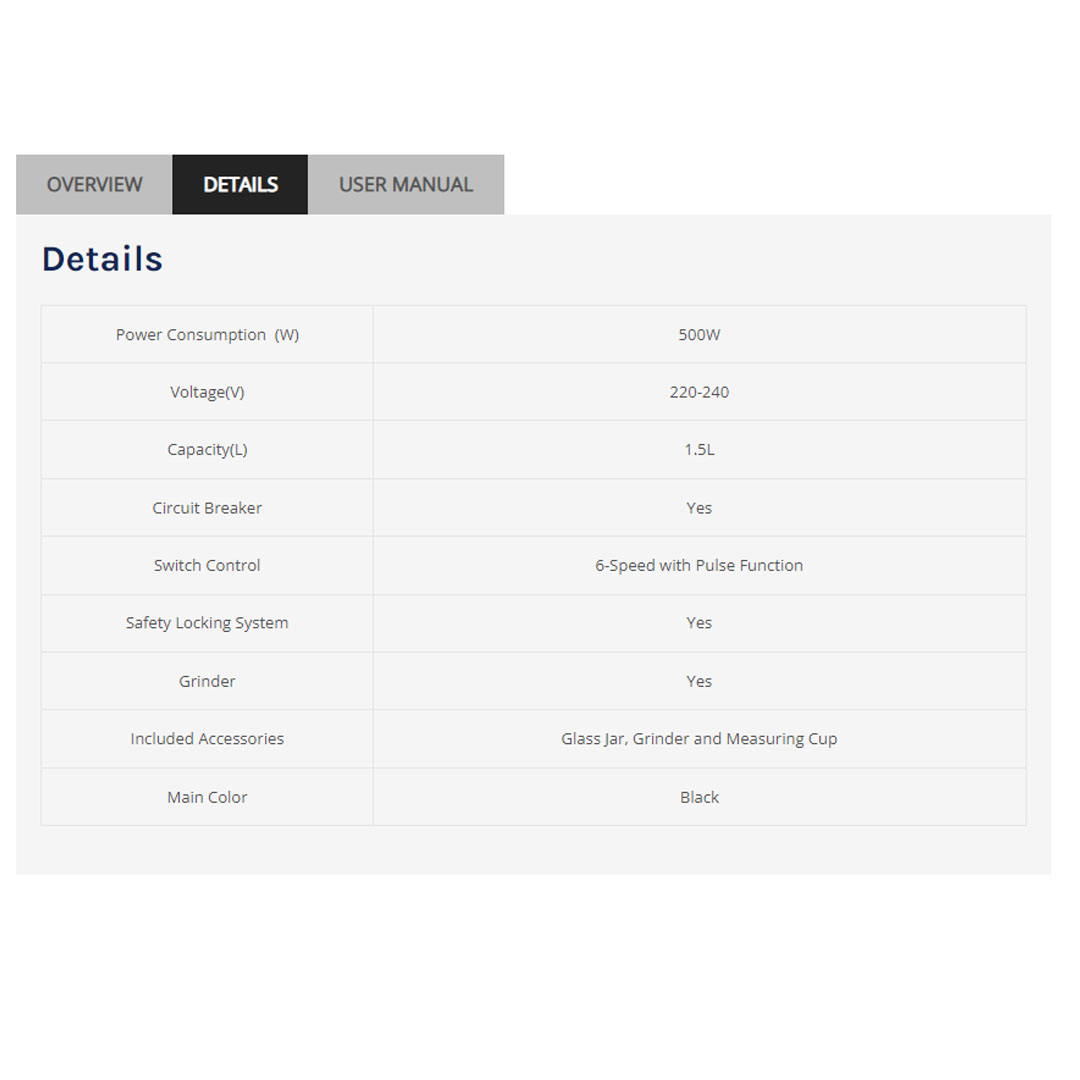 ● Included Glass Jar, Grinder and Measuring Cup