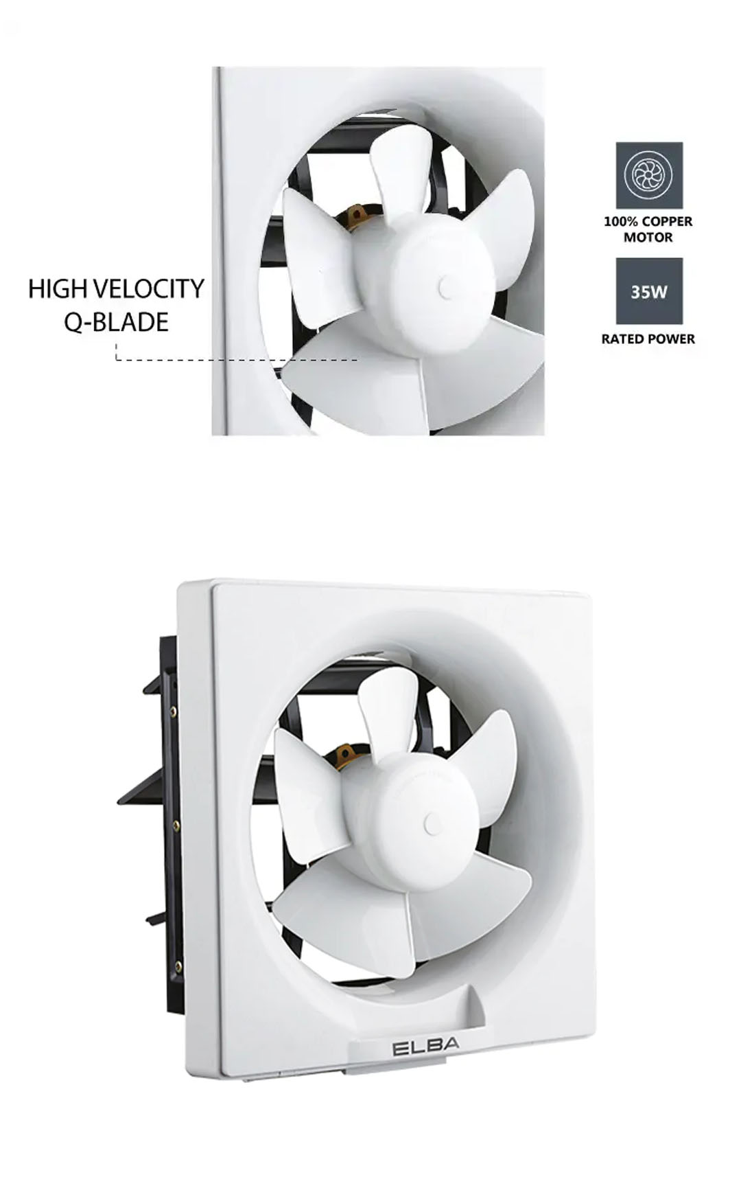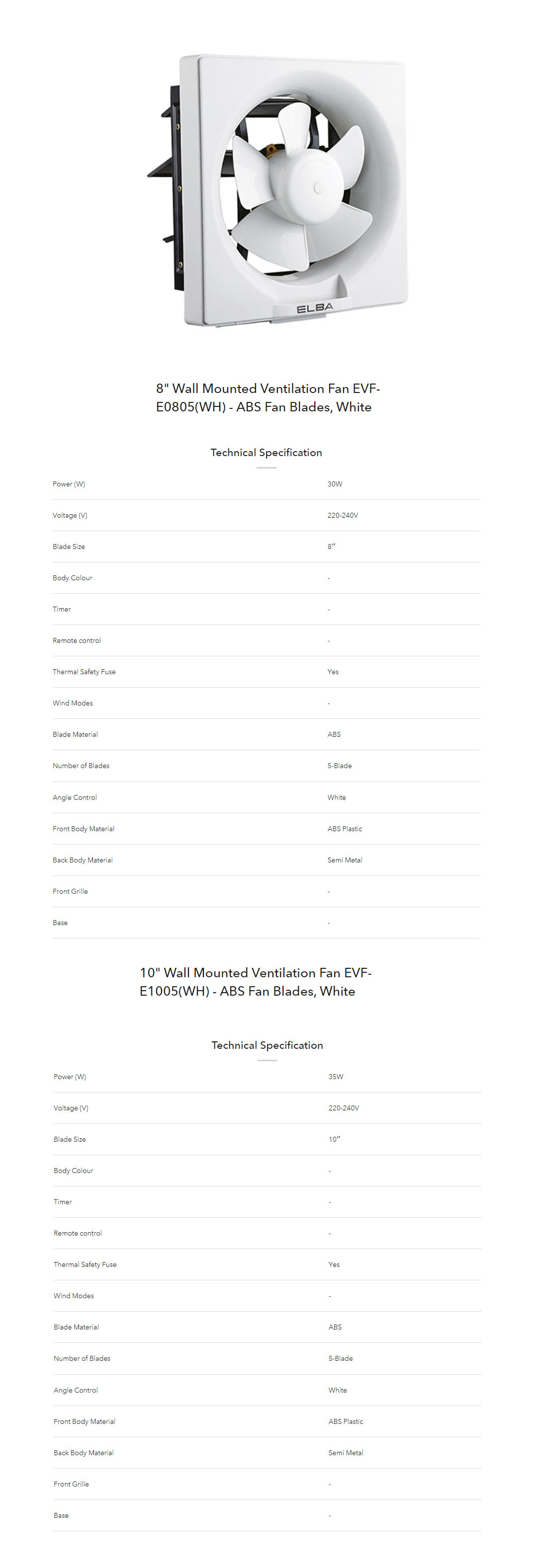 ELBA 8"|10" Ventilation Fan EVF-E0805(WH)/EVF-E1005(WH) | High Efficiency Air Flow | Built-in Thermal Safety Fuse | Quiet Operation | Ventilation Fan with 1 Year Warranty