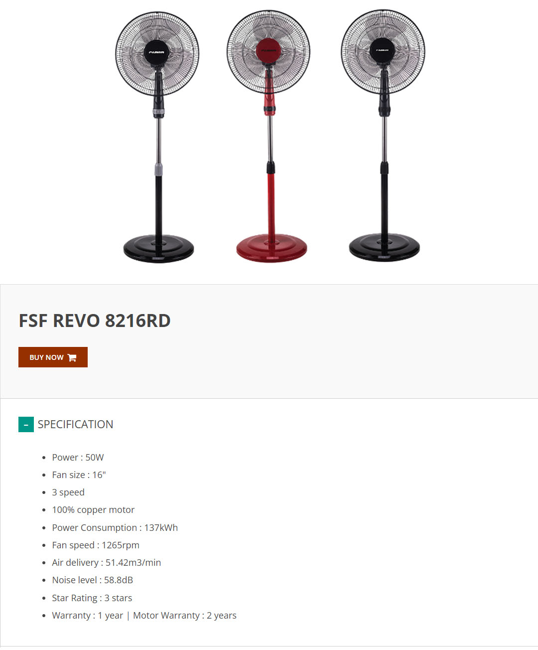 FABER 16" Stand Fan FSF REVO 8416BK / FSF REVO 8216RD / FSF REVO 8116GR | 3 Star Energy Rating | 3 Speed | 100% Copper Motor | 1265rpm Fan Speed | Stand Fan with 1 Year General Warranty & 2 Years Motor Warranty
