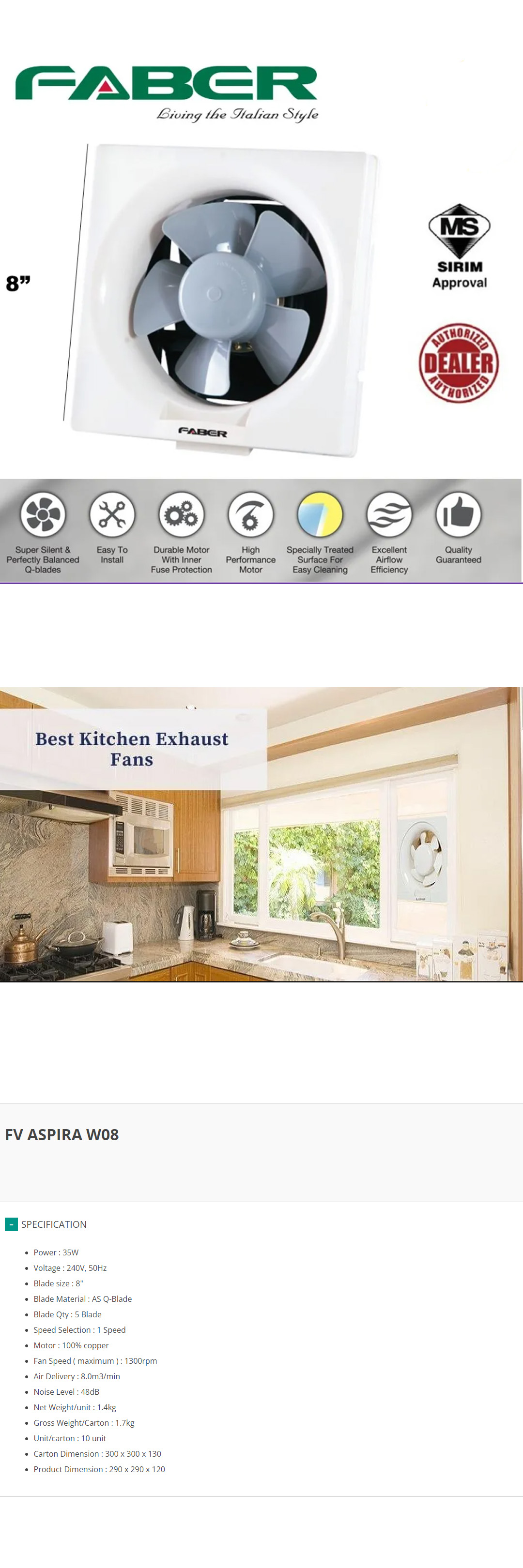 FABER 8" Ventilation Fan FV ASPIRA W08 | 5 Blades | 1300rpm Fan Speed | 48dB Noise Level | Ventilation Fan with 1 Year Warranty