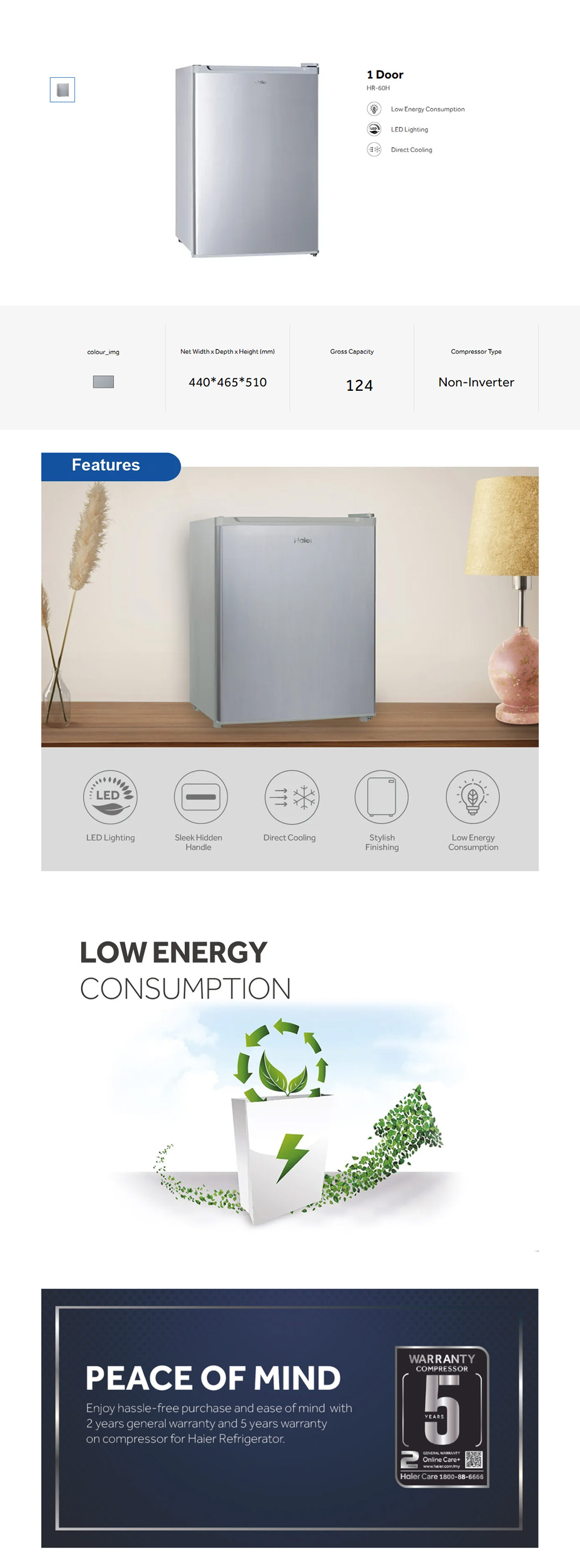 HAIER 124L Minibar HR-135H | Low Energy Consumption | LED Lighting | Direct Cooling | Refrigerator with 2 Year Warranty