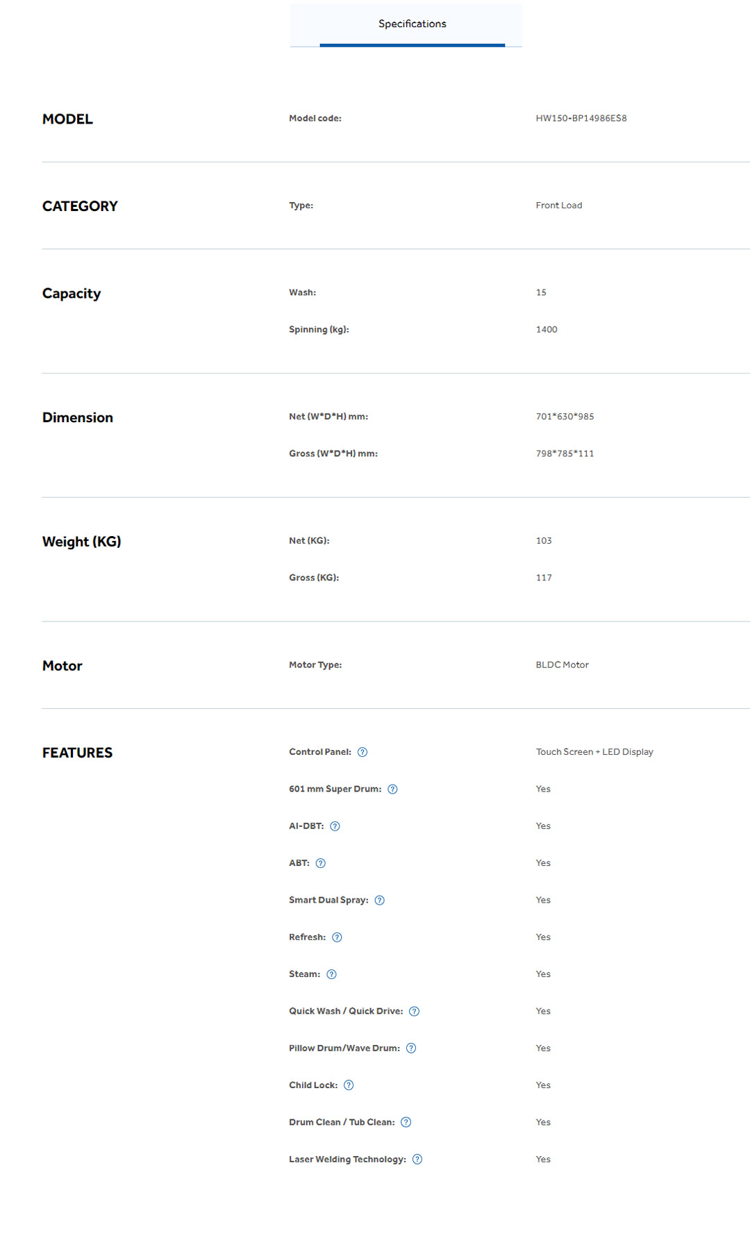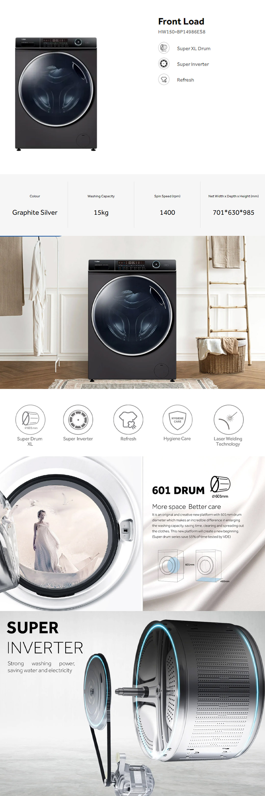 HAIER 15KG Super Inverter Front Load Washing Machine HW150-BP14986ES8 | Super XL Drum | Laser Welding Technology | Quick Wash | Washing Machine with 2 Year Warranty