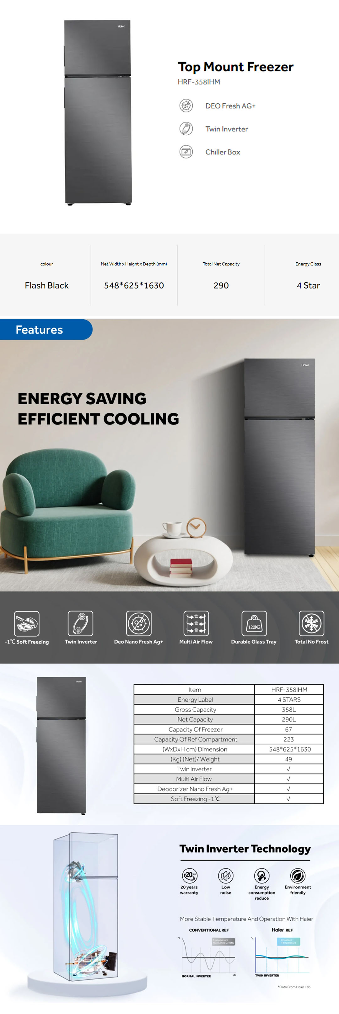 HAIER 358L 2 Doors Top Mount Twin Inverter Refrigerator HRF-358IHM | Twin-Inverter | Chiller Box | Large-Capacity | Refrigerator with 2 Years Warranty