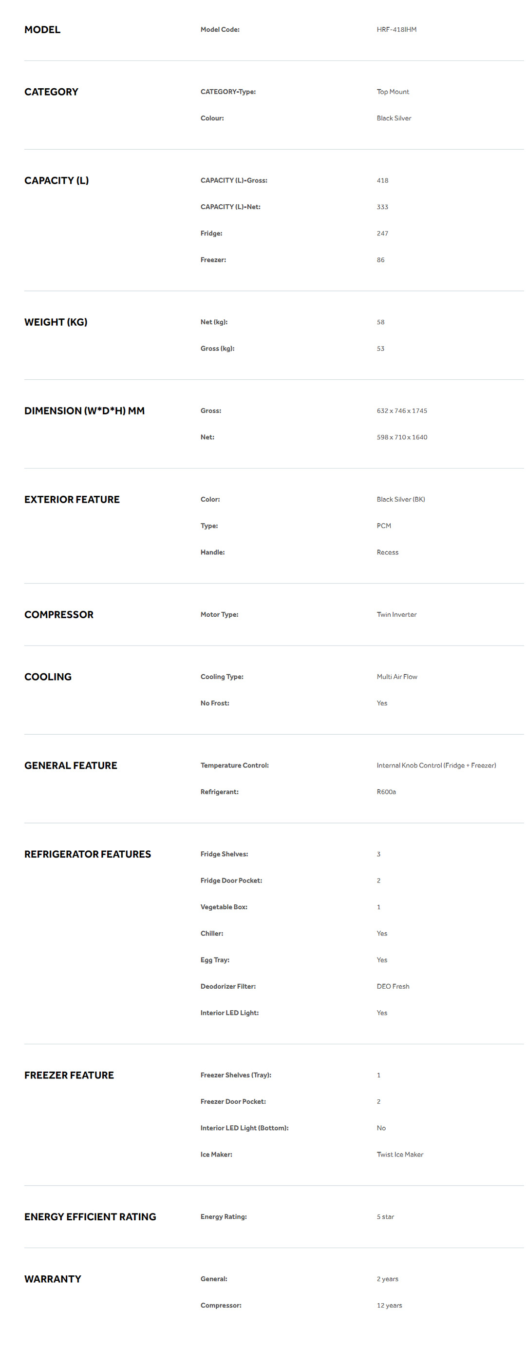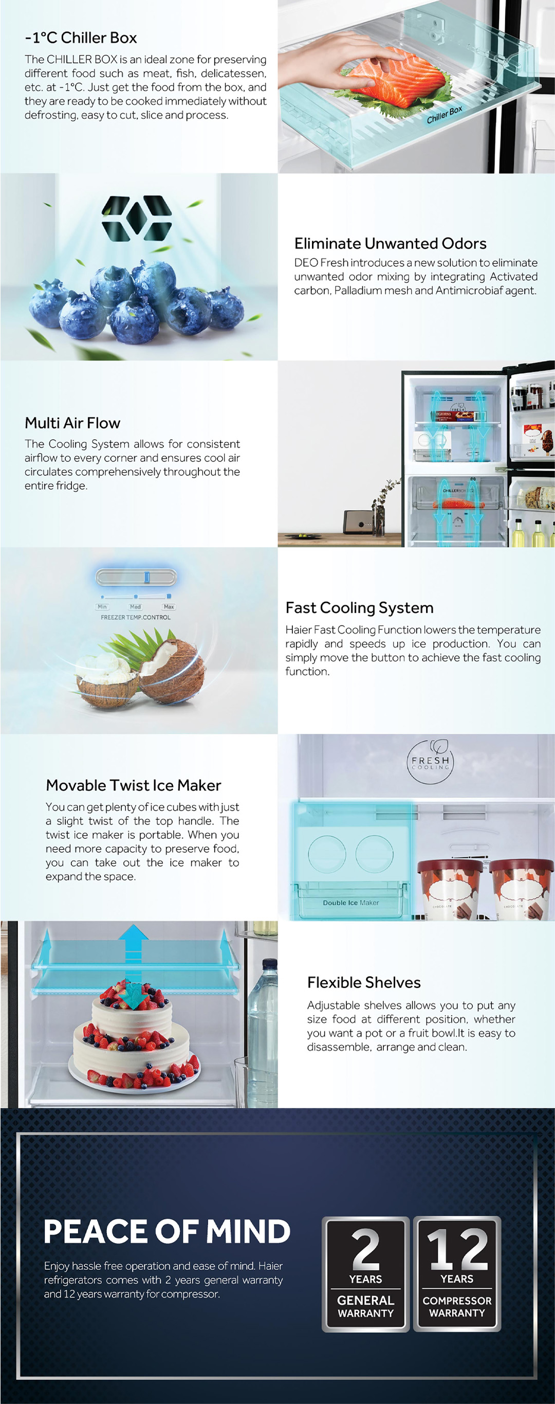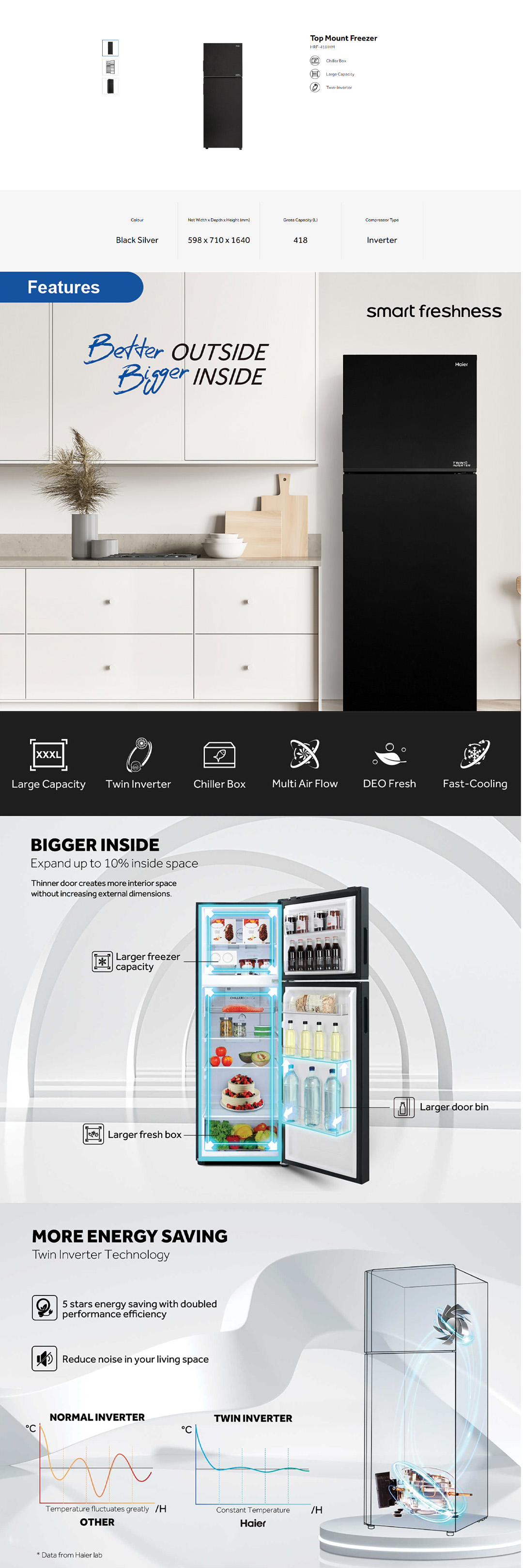 HAIER 418L 2 Doors Top Mount Twin Inverter Refrigerator HRF-418IHM | Fast Cooling System | Movable Twist Ice Maker | Flexible Shelves | Refrigerator with 2 Years Warranty
