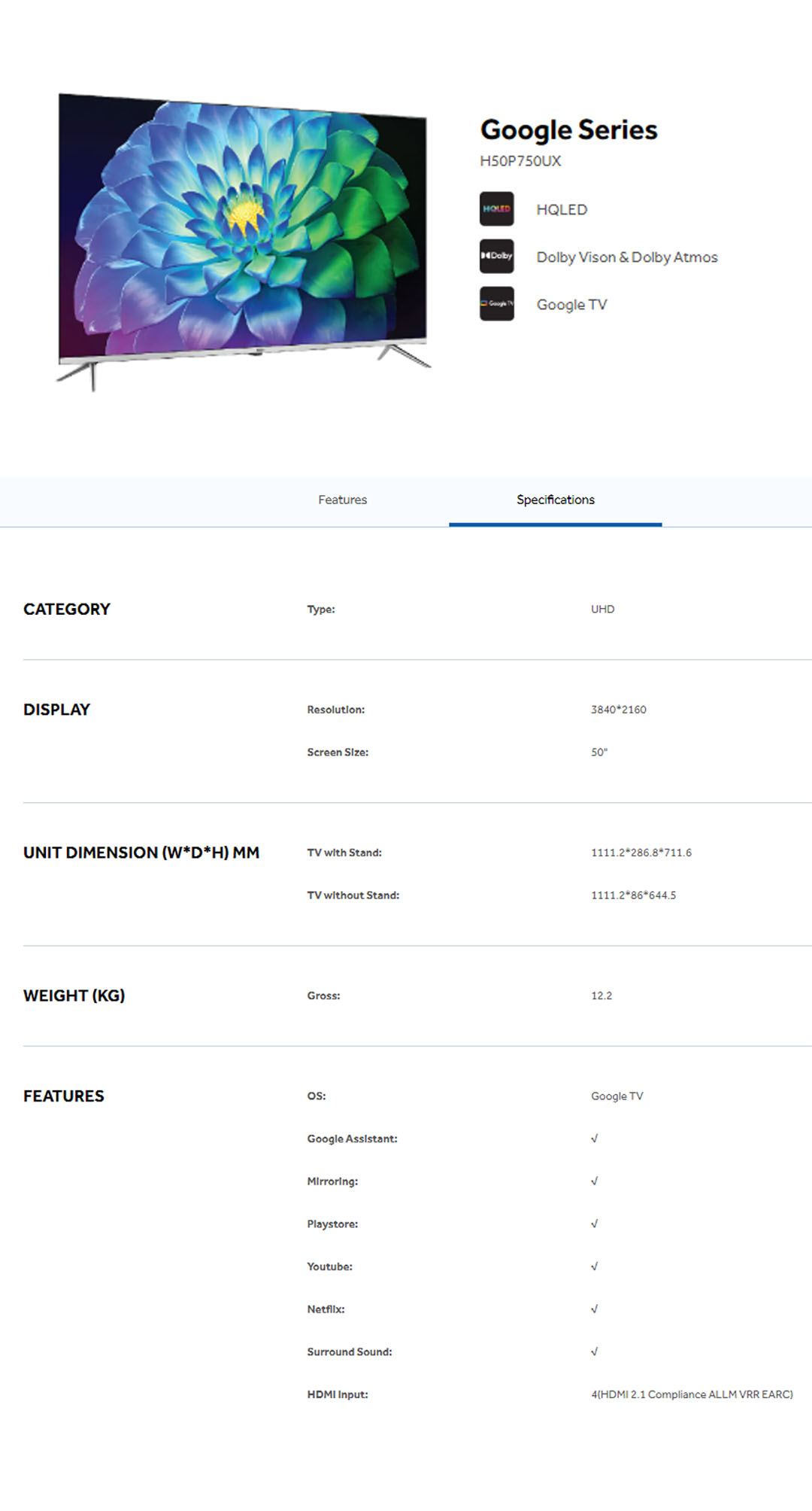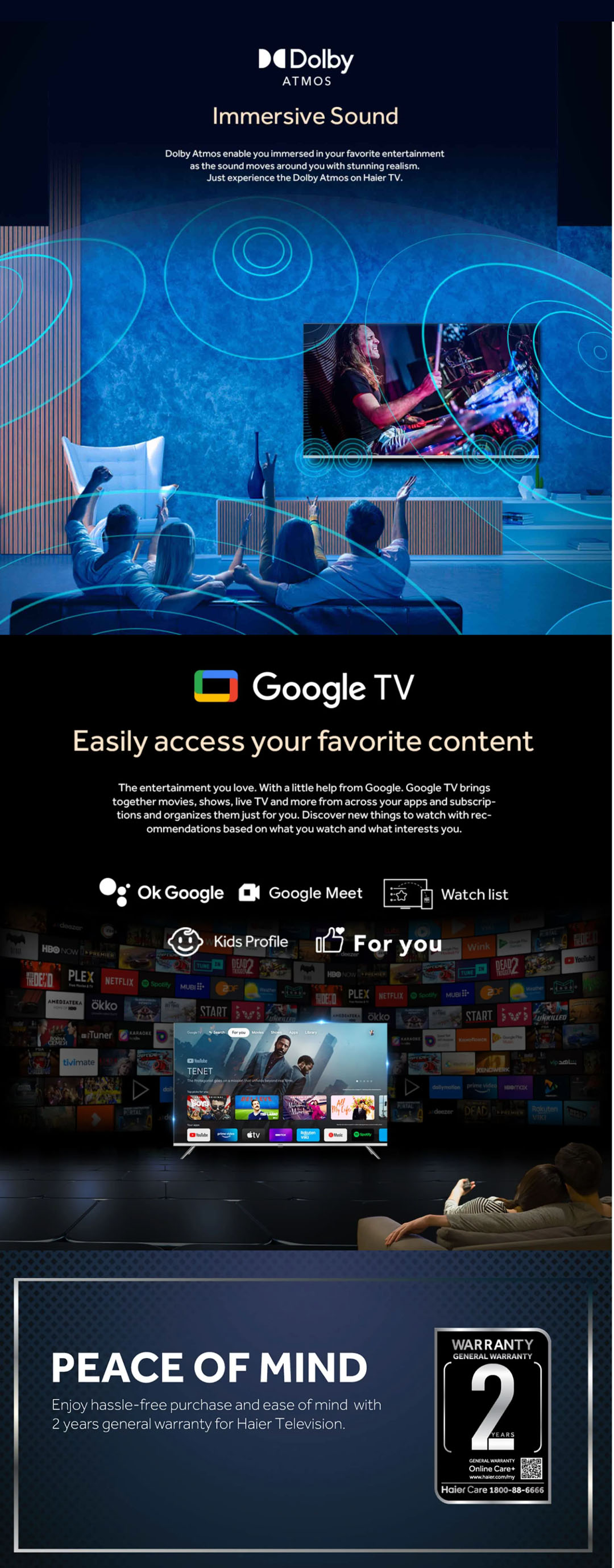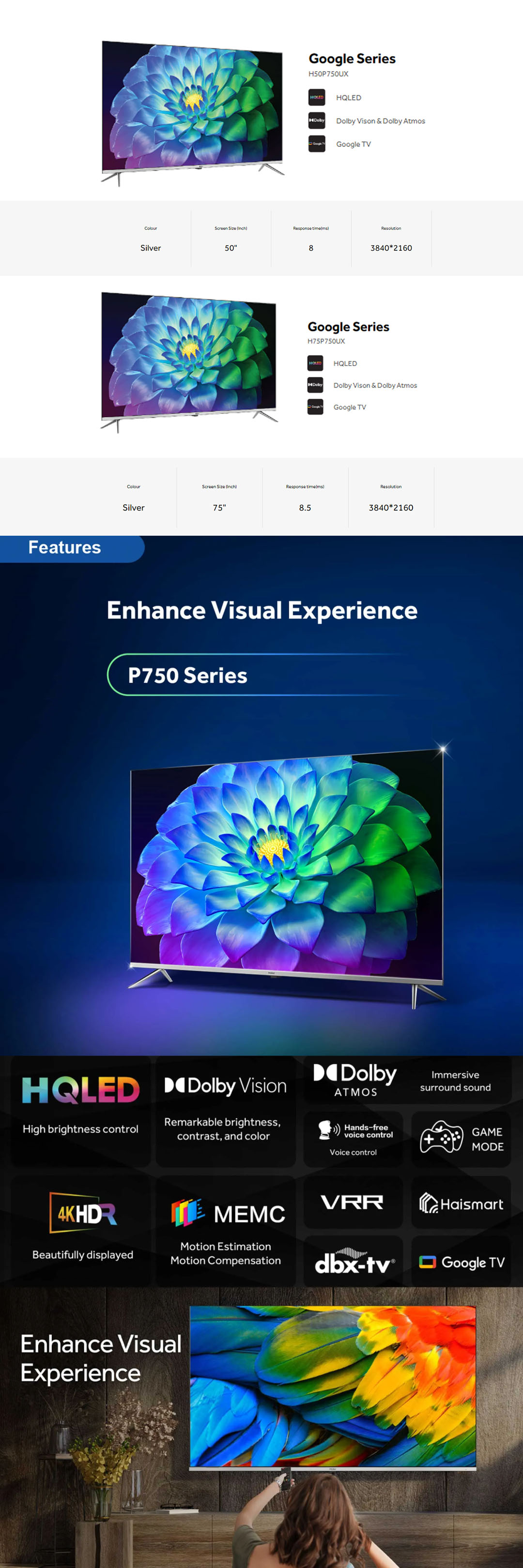 HAIER 50"/75" 4K UHD Google HQLED TV H50P750UX/H75P750UX | Boundless Vision | Dolby Vison & Dolby Atmos | HQLED | Smart TV with 2 Year Warranty