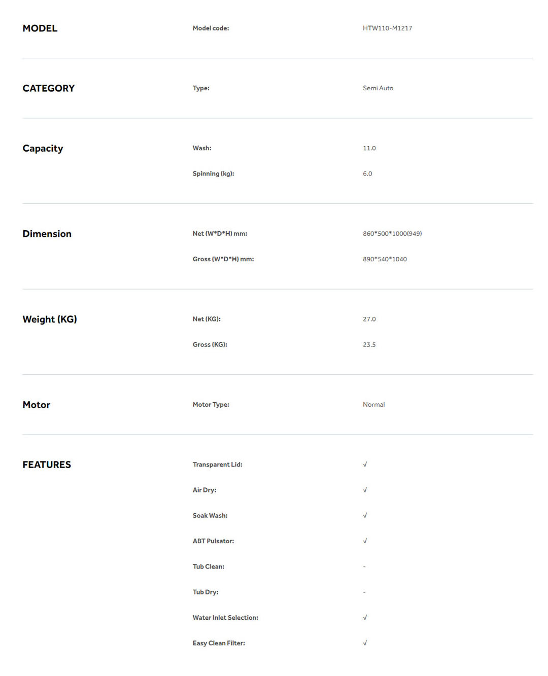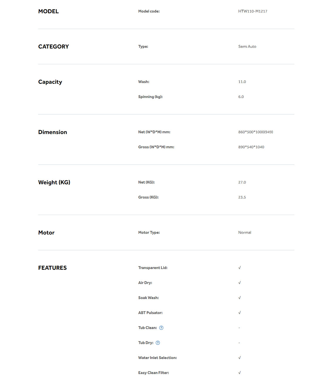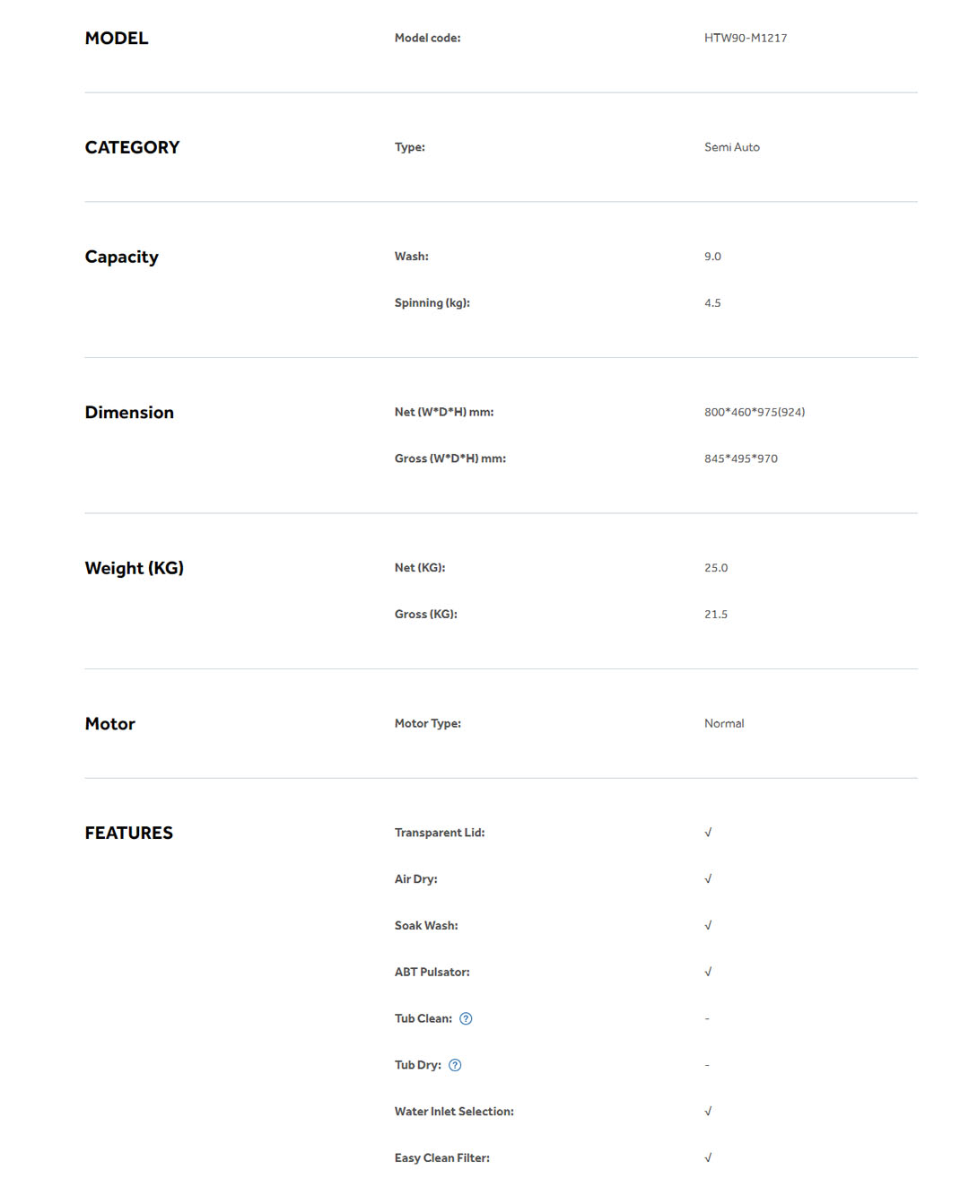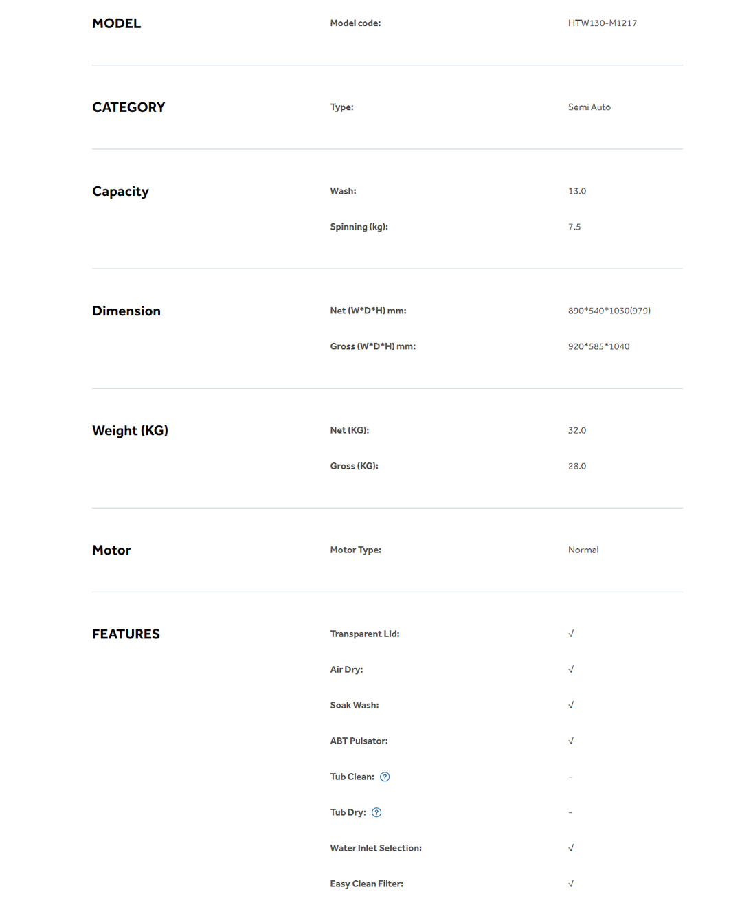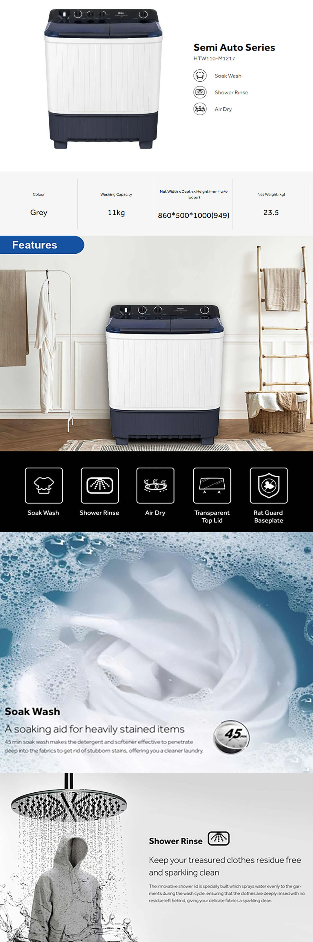 HAIER 7KG/9KG/11KG/13KG Semi Auto Washing Machine HTW70-M1217/HTW90-M1217/HTW110-M1217/HTW130-M1217 | Soak Wash | Shower Rinse | Air Dry | Transparent Top Lid | Rat Guard Baseplate | Washing Machine with 2 Year Warranty