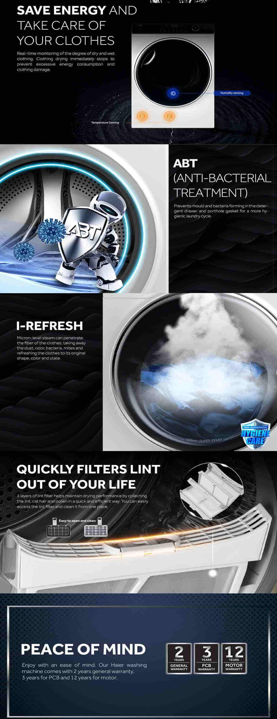 HAIER 9KG Heat Pump Dryer HD90-A2979 | I-Refresh | ABT | I-Time | LED Display | Child Lock | Sensor Dry | Dryer with 2 Years Warranty