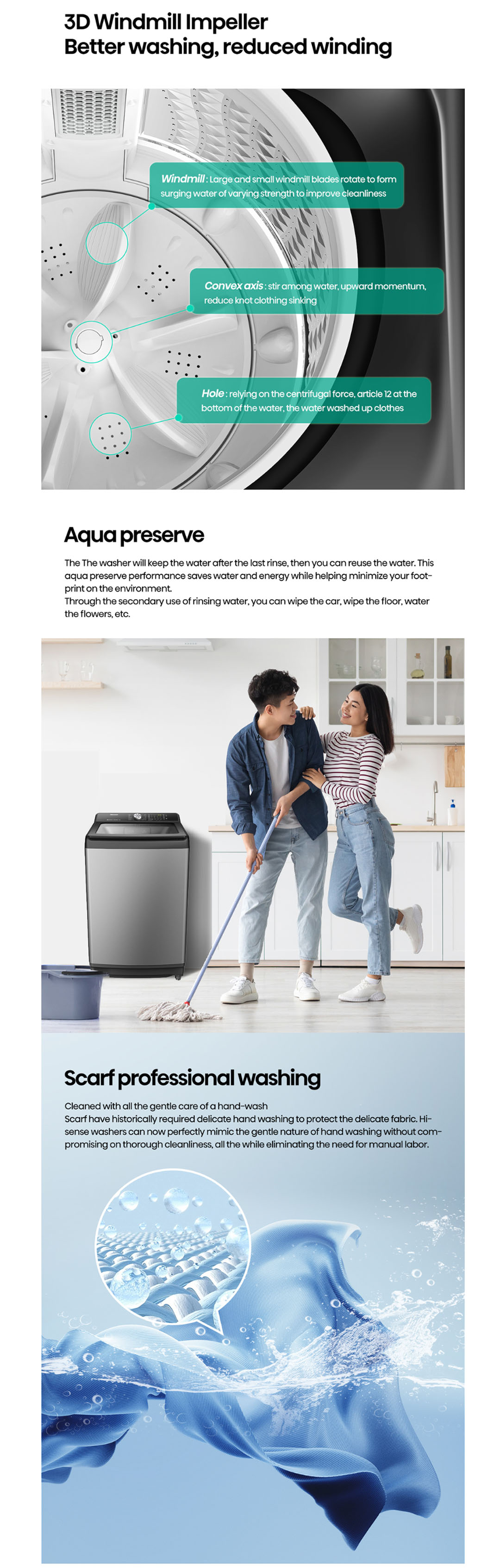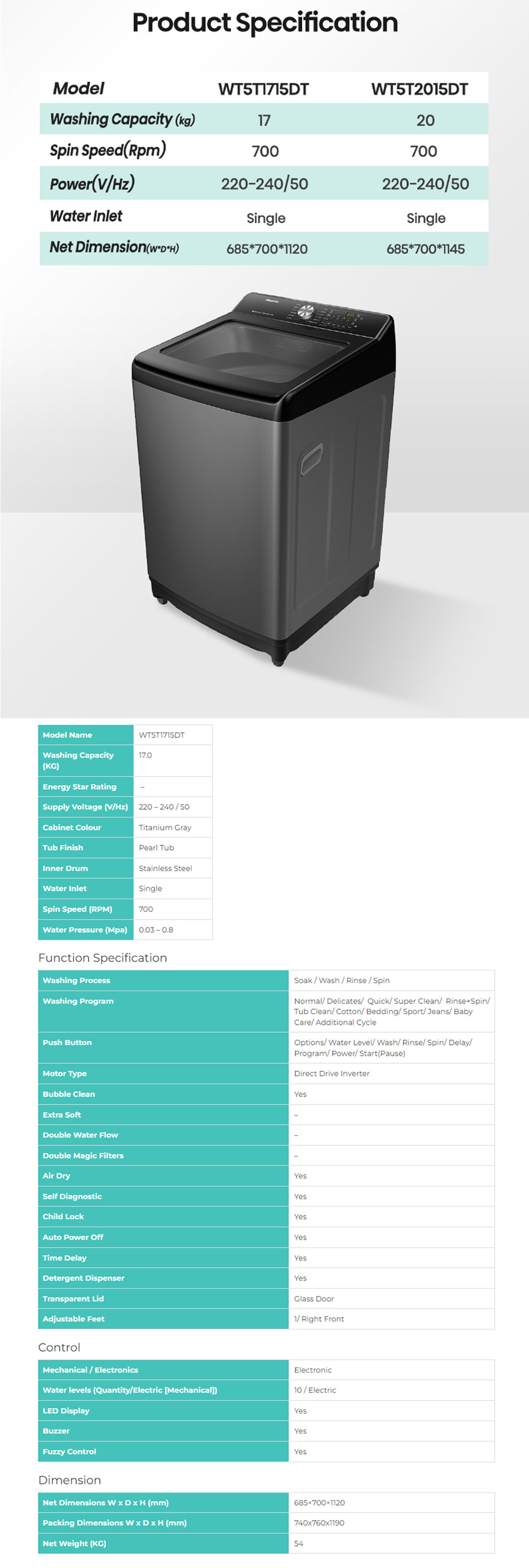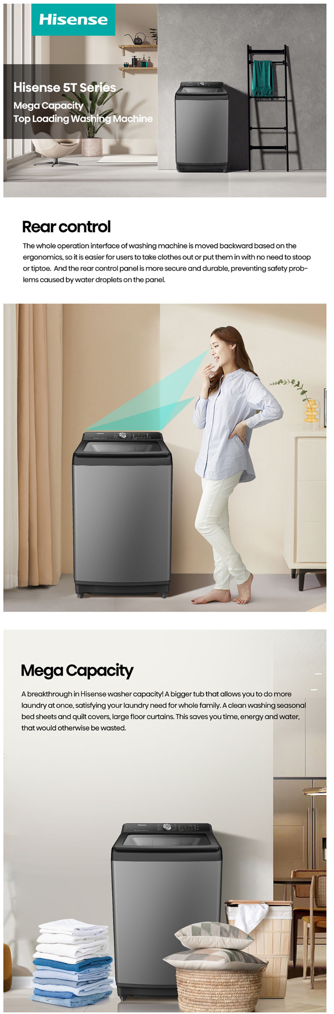 HISENSE 17KG Top Load Washing Machine with Direct Drive Inverter WT5T1715DT | Direct Drive Inverter | Mega Capacity | 3D Windmill Impeller | Connect Life App | Washing Machine with 2 Years Warranty