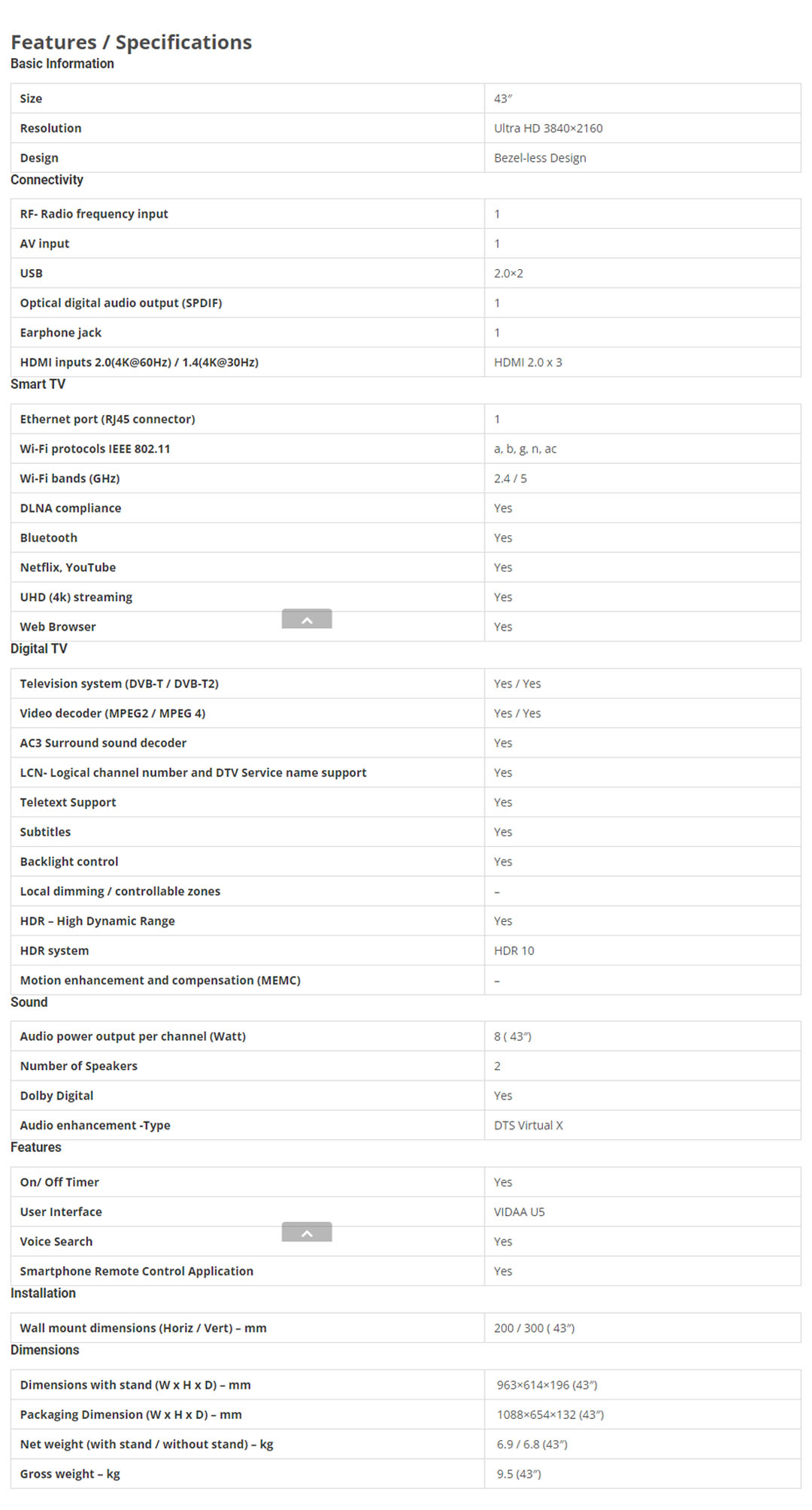 HISENSE 43" 4K UHD LED TV 43A6100H | VIDAA U5 | 4K Resolution | Sport Mode | Smart TV with 3 Year Warranty